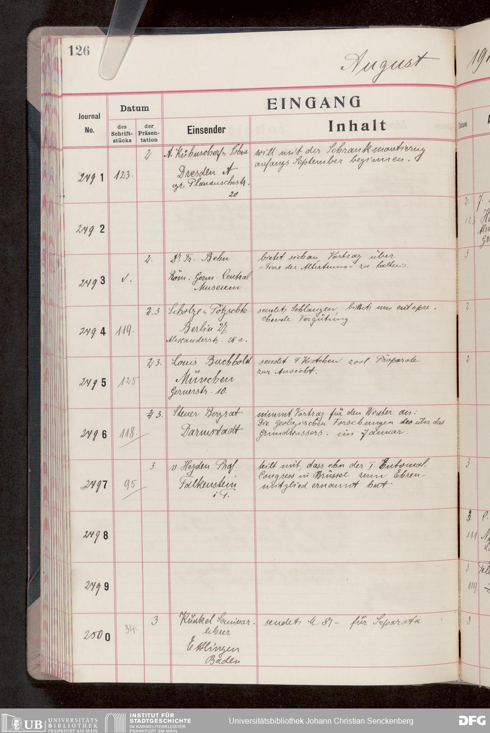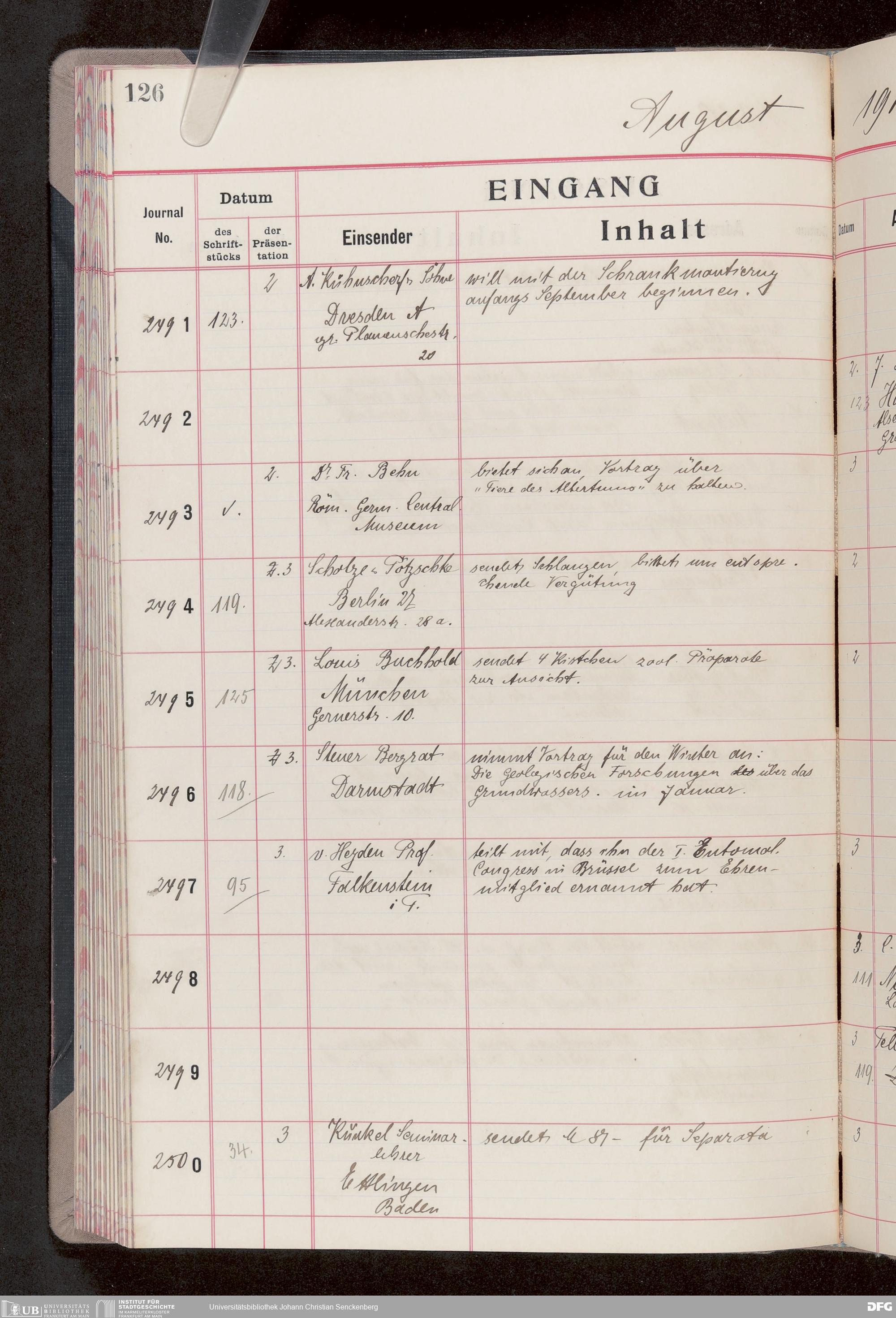 V176 Senckenberg Gesellschaft für Naturforschung, 682 - Journal der eingegangenen und ausgegangenen Briefe