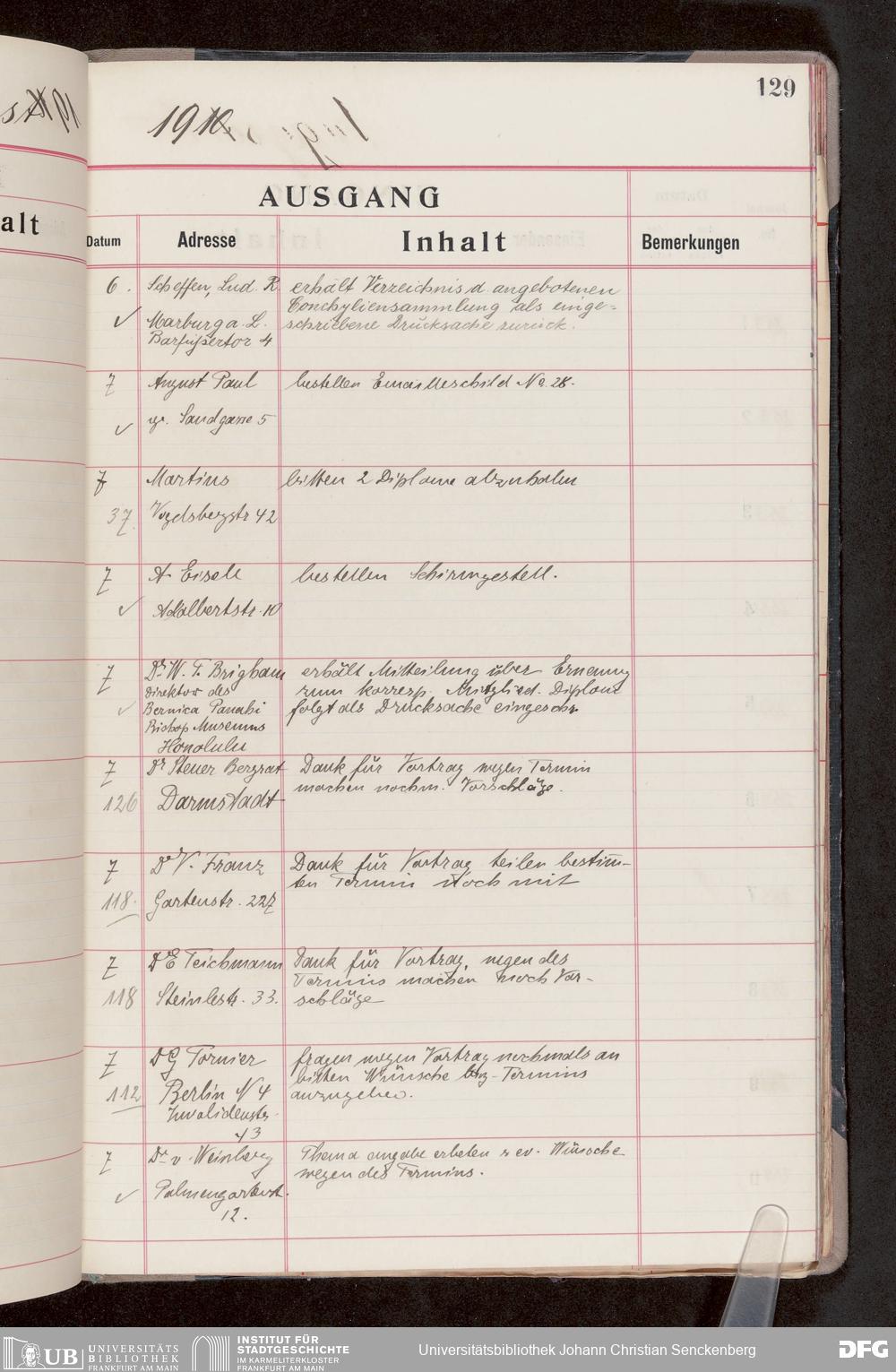 V176 Senckenberg Gesellschaft für Naturforschung, 682 - Journal der eingegangenen und ausgegangenen Briefe
