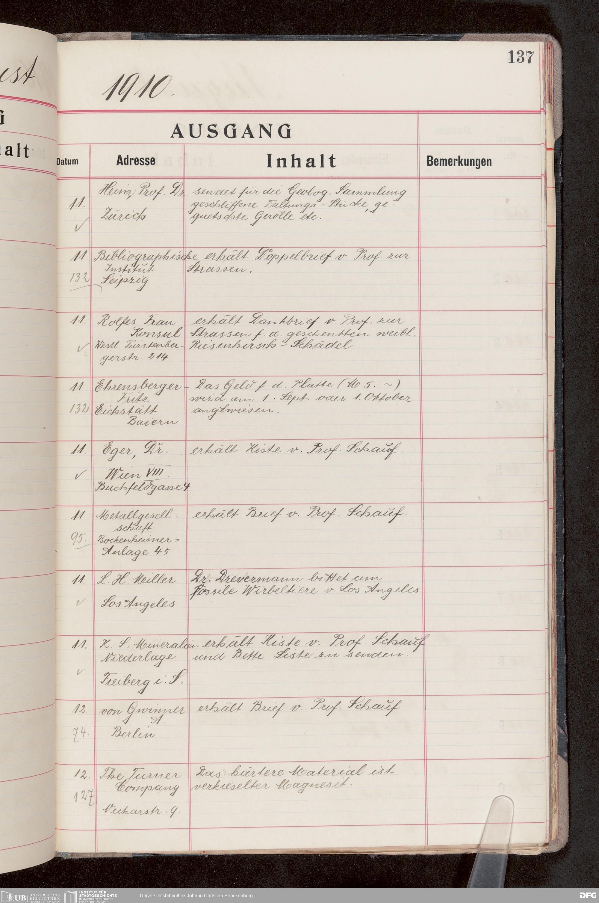 V176 Senckenberg Gesellschaft für Naturforschung, 682 - Journal der eingegangenen und ausgegangenen Briefe