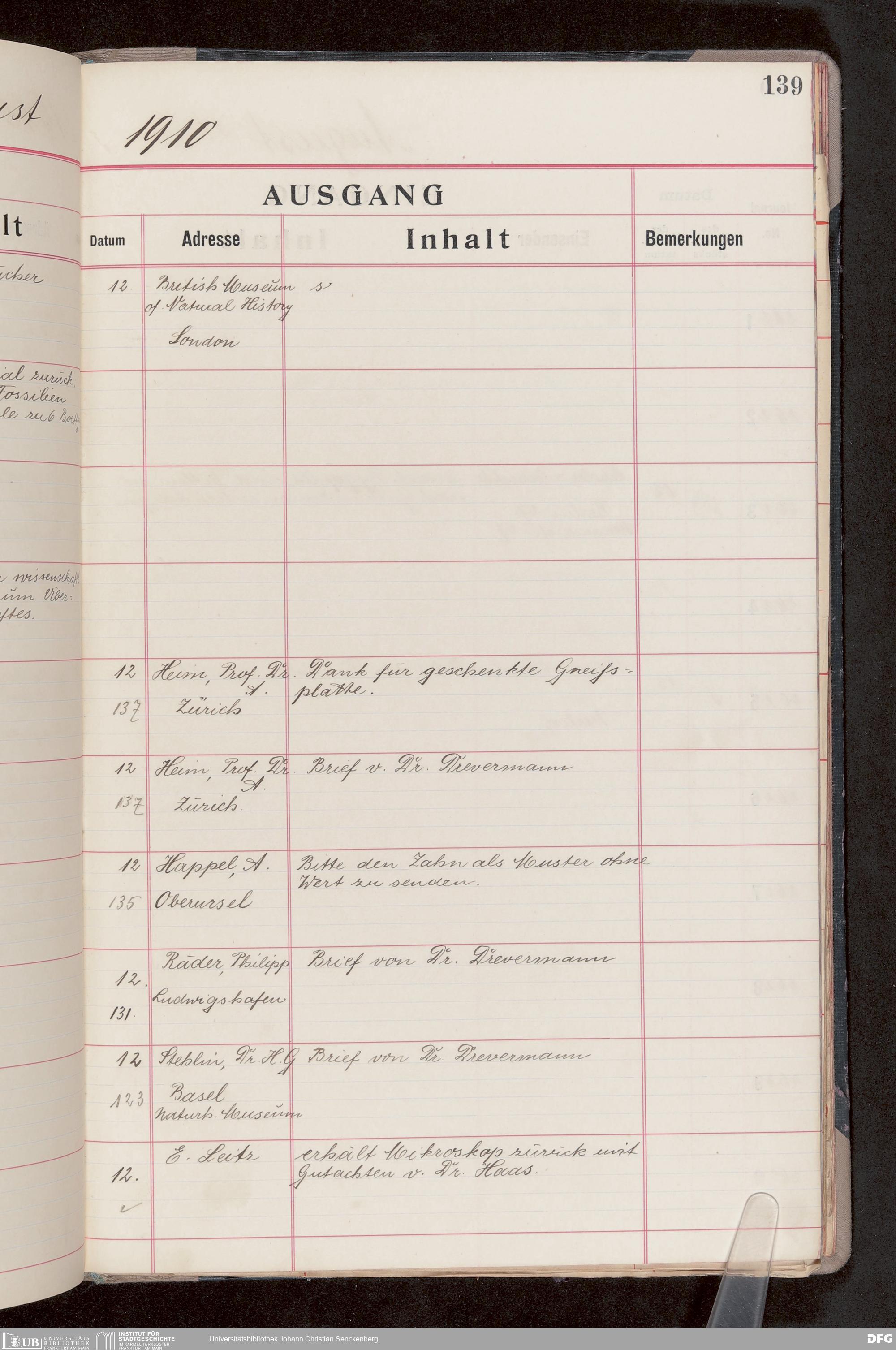 V176 Senckenberg Gesellschaft für Naturforschung, 682 - Journal der eingegangenen und ausgegangenen Briefe