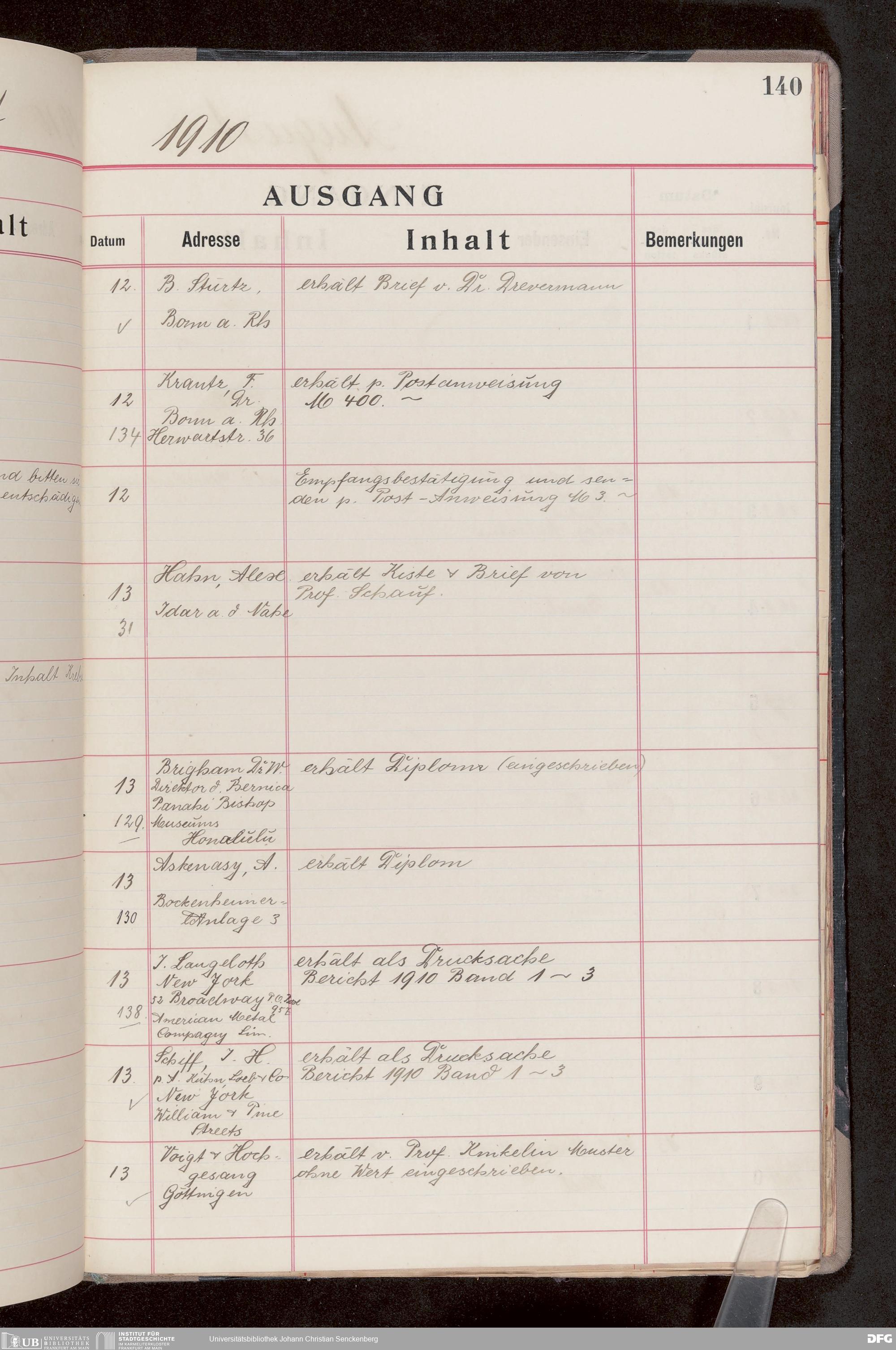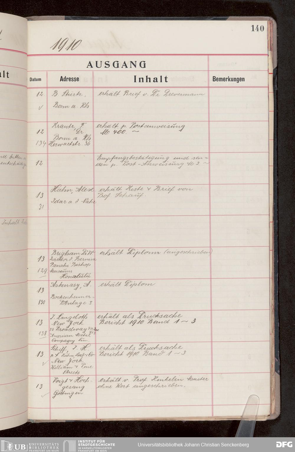 V176 Senckenberg Gesellschaft für Naturforschung, 682 - Journal der eingegangenen und ausgegangenen Briefe