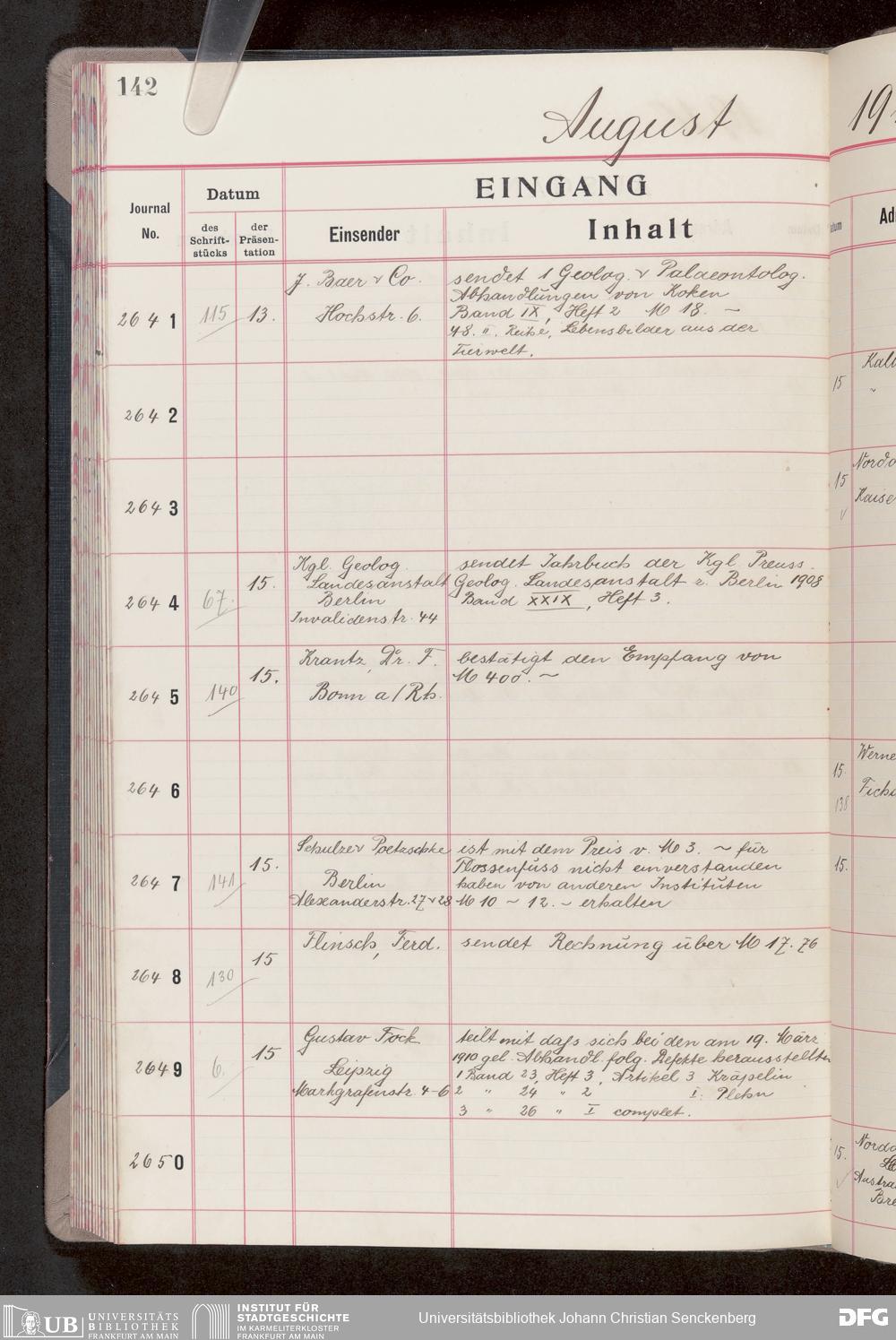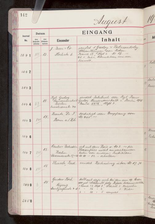 V176 Senckenberg Gesellschaft für Naturforschung, 682 - Journal der eingegangenen und ausgegangenen Briefe
