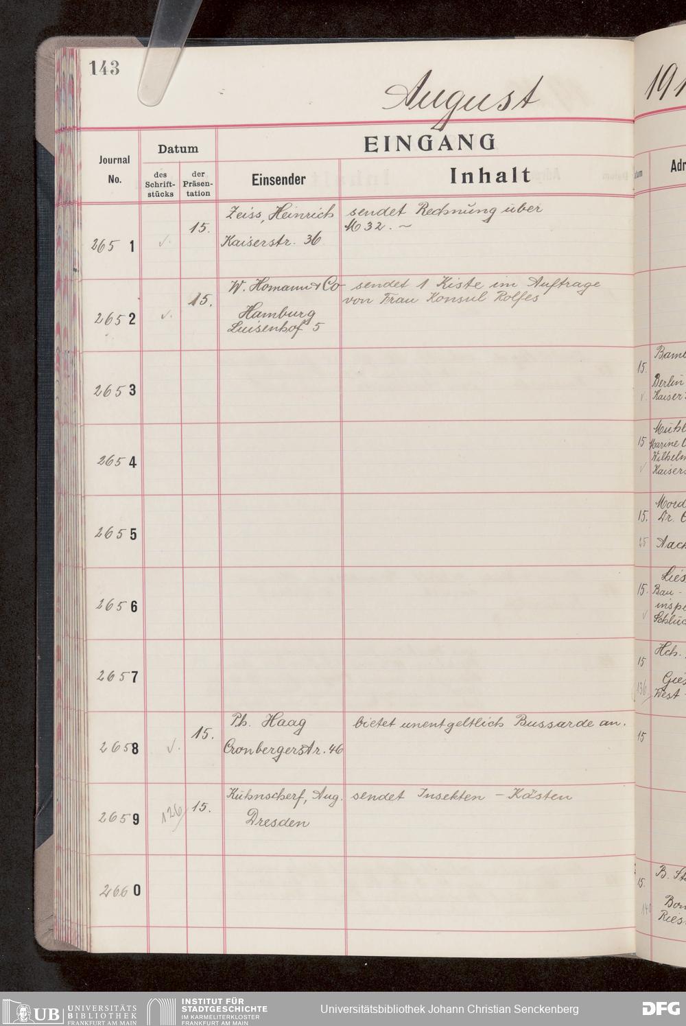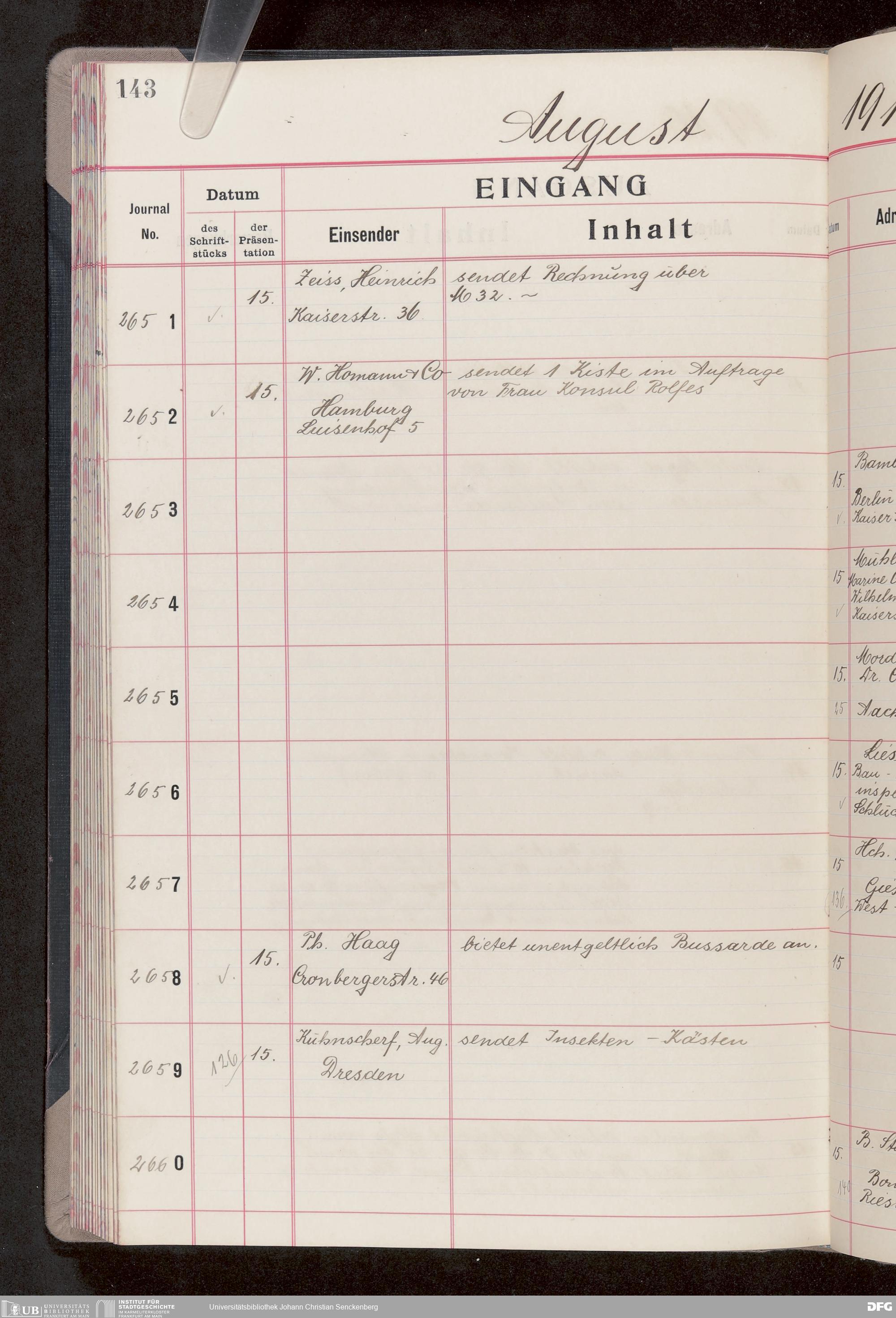 V176 Senckenberg Gesellschaft für Naturforschung, 682 - Journal der eingegangenen und ausgegangenen Briefe