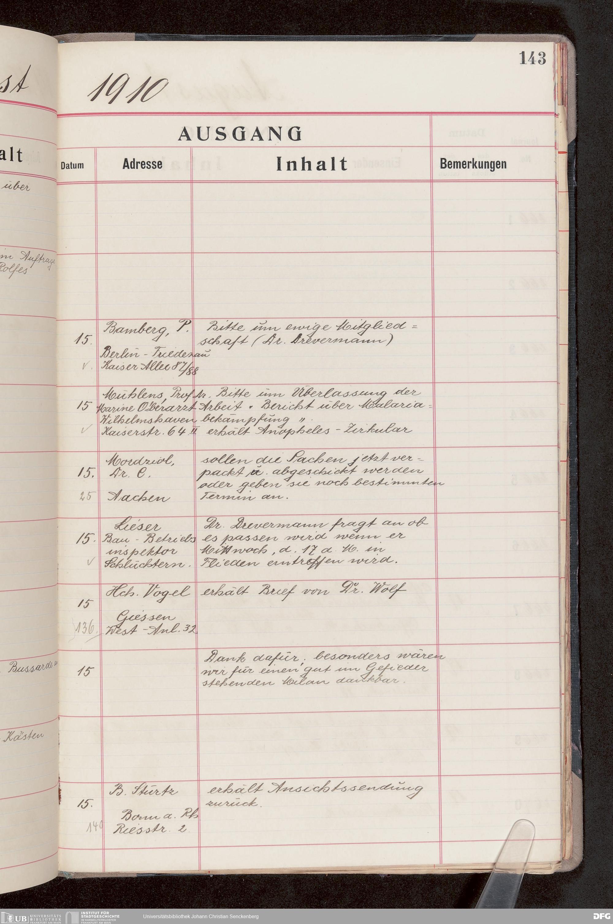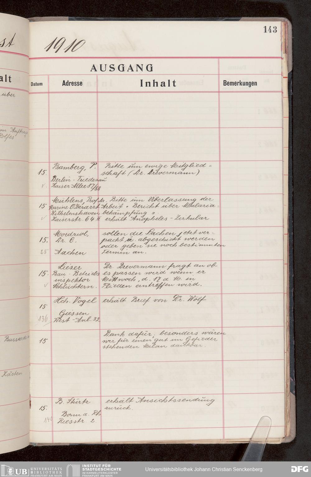 V176 Senckenberg Gesellschaft für Naturforschung, 682 - Journal der eingegangenen und ausgegangenen Briefe