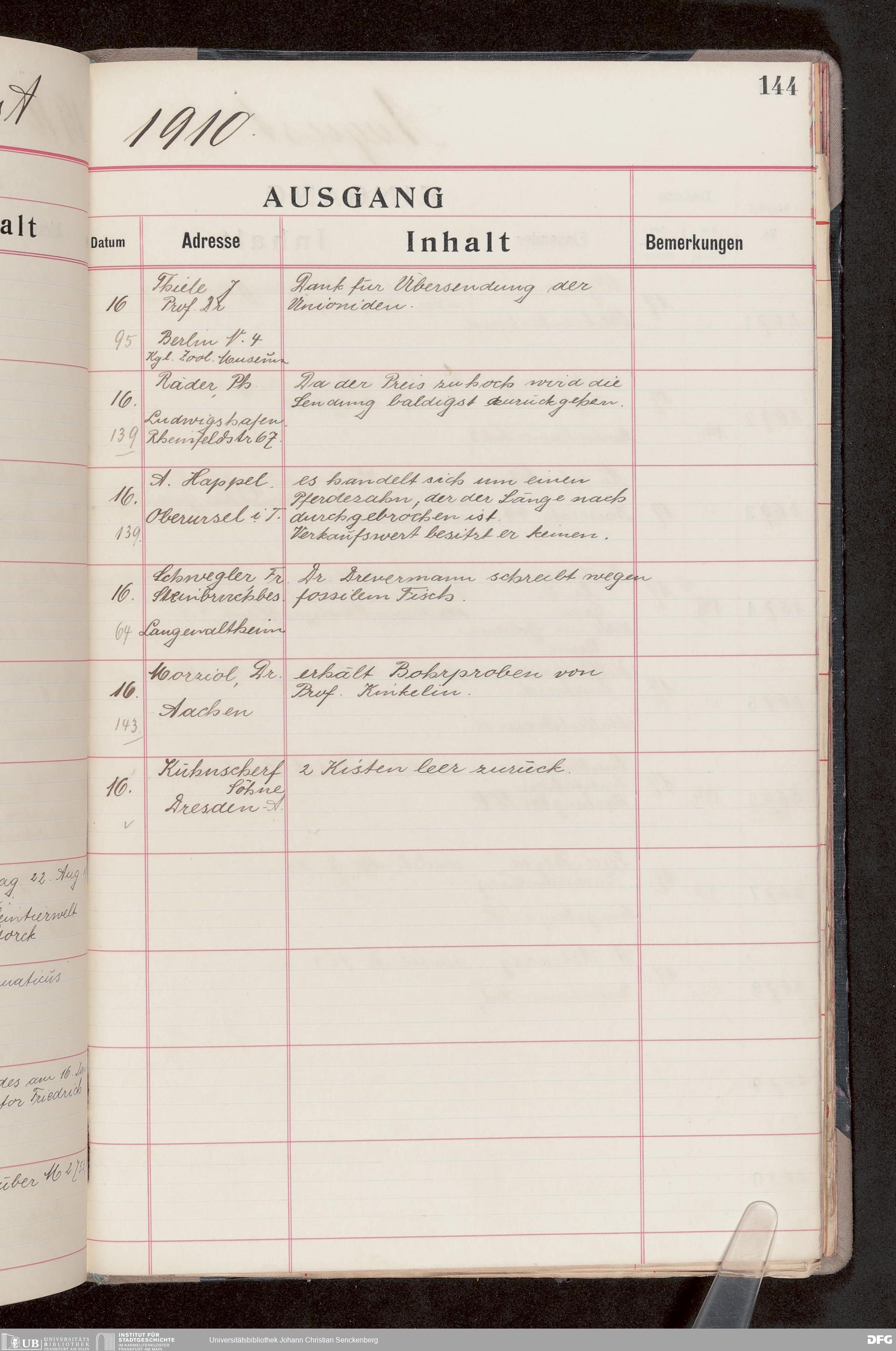 V176 Senckenberg Gesellschaft für Naturforschung, 682 - Journal der eingegangenen und ausgegangenen Briefe
