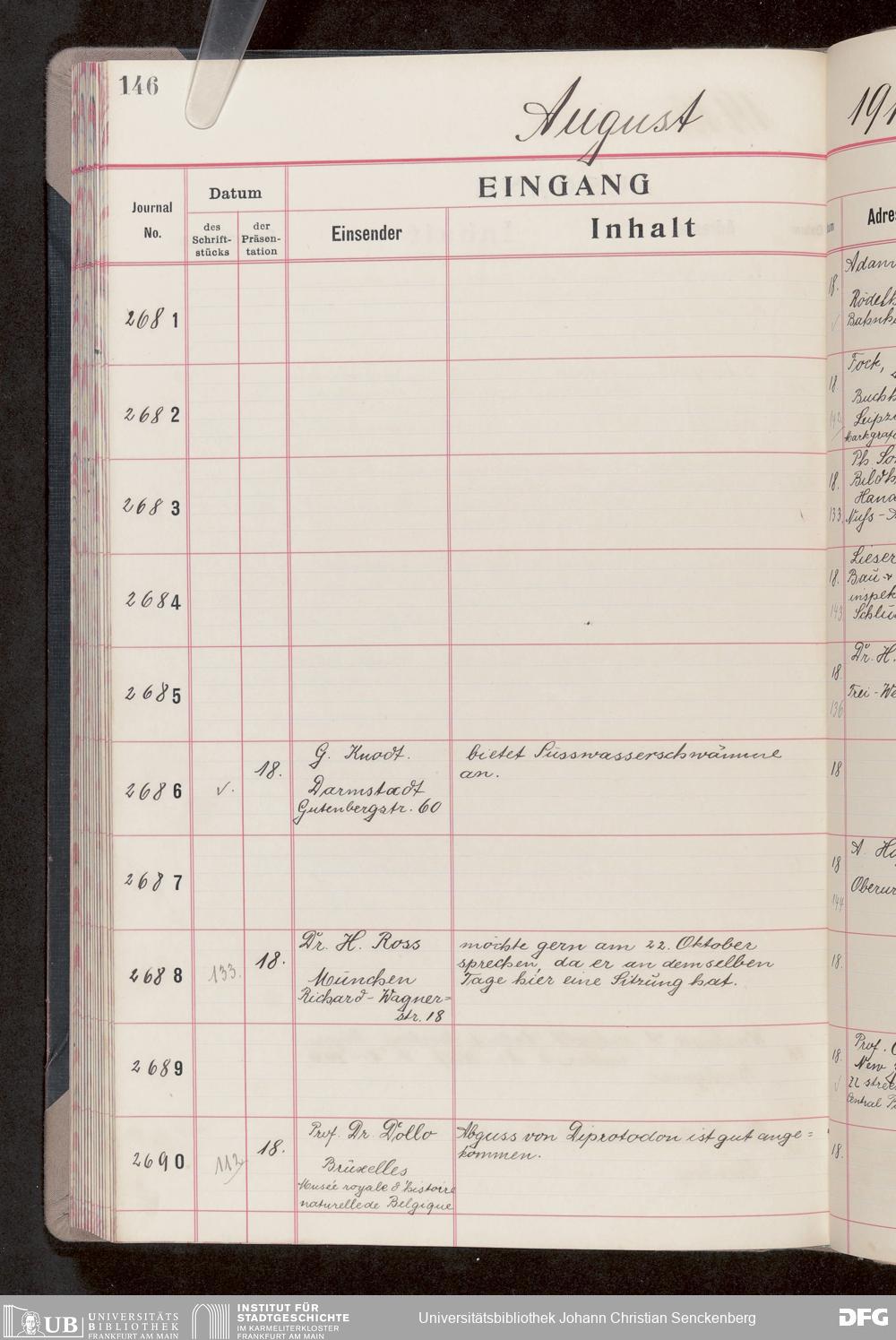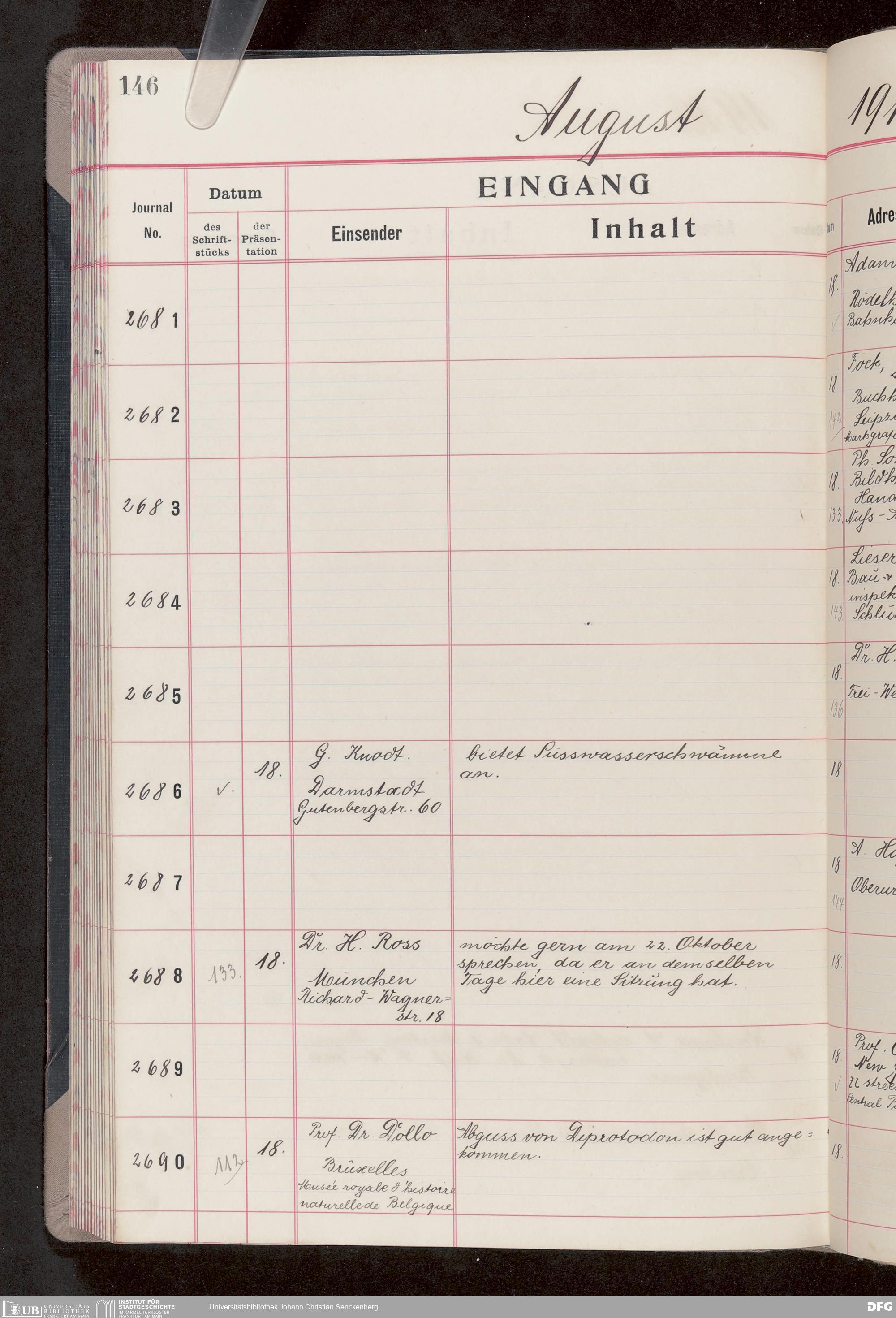 V176 Senckenberg Gesellschaft für Naturforschung, 682 - Journal der eingegangenen und ausgegangenen Briefe