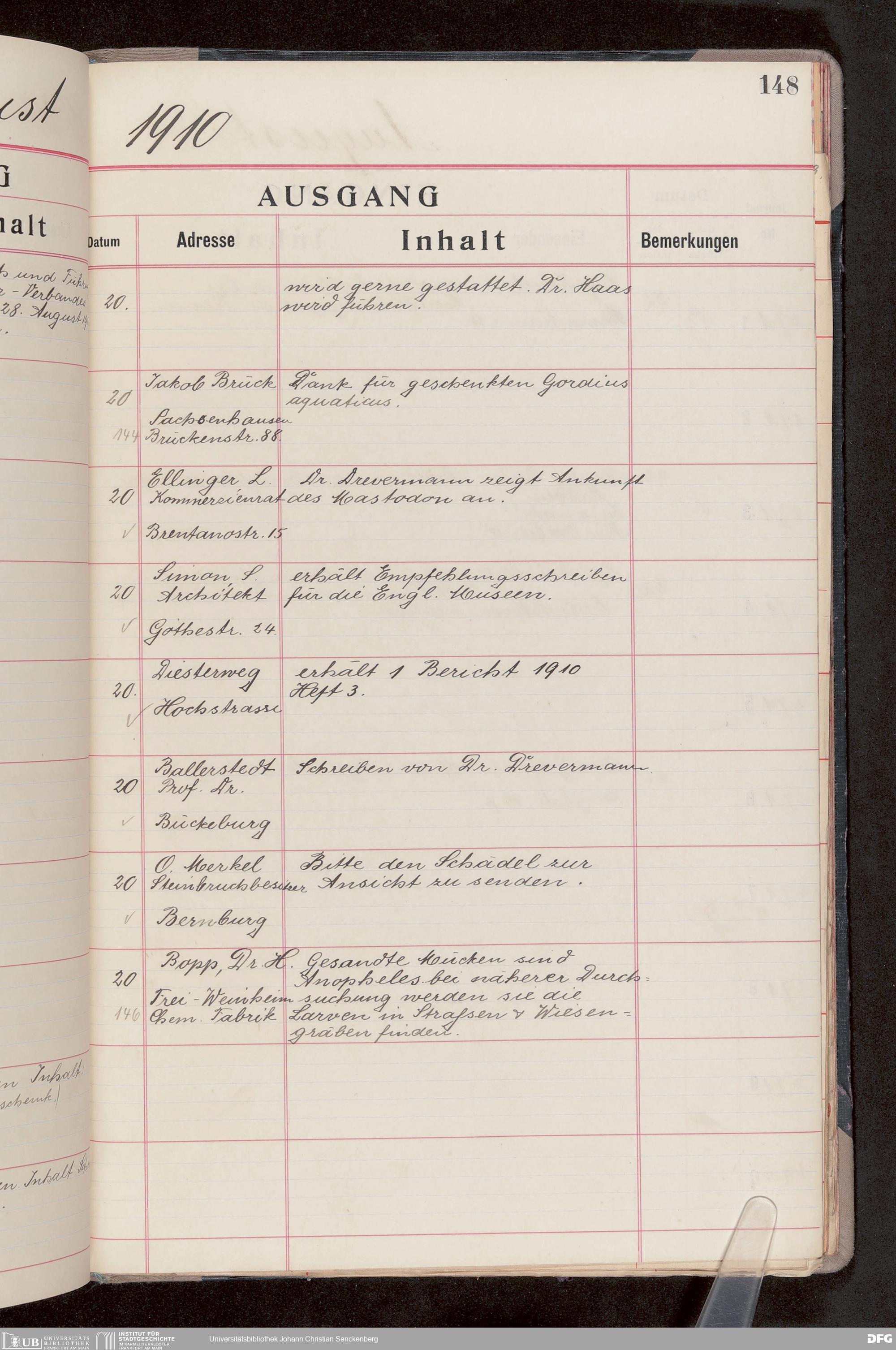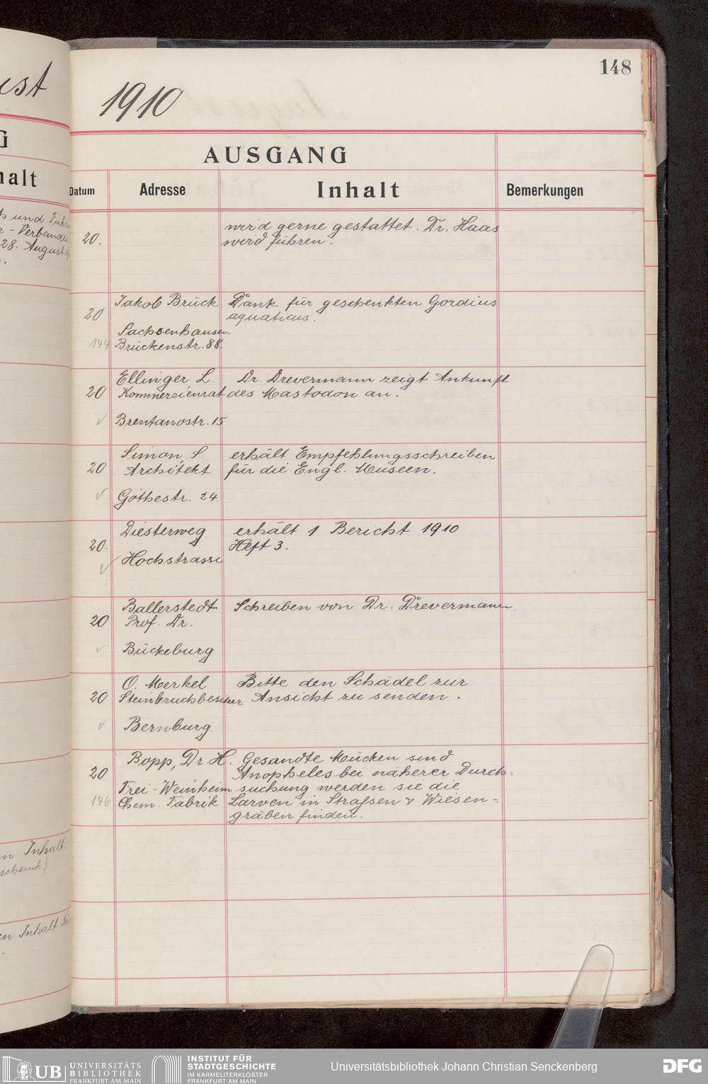 V176 Senckenberg Gesellschaft für Naturforschung, 682 - Journal der eingegangenen und ausgegangenen Briefe