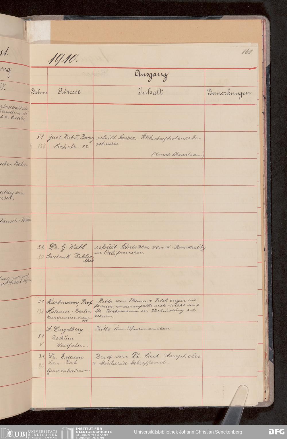 V176 Senckenberg Gesellschaft für Naturforschung, 682 - Journal der eingegangenen und ausgegangenen Briefe