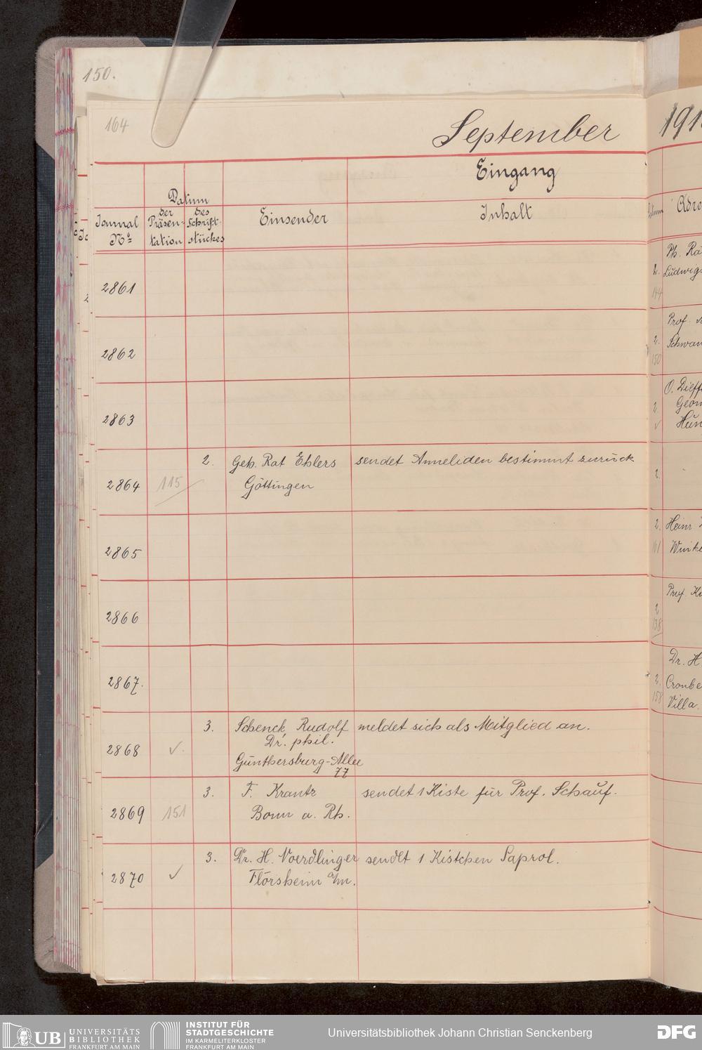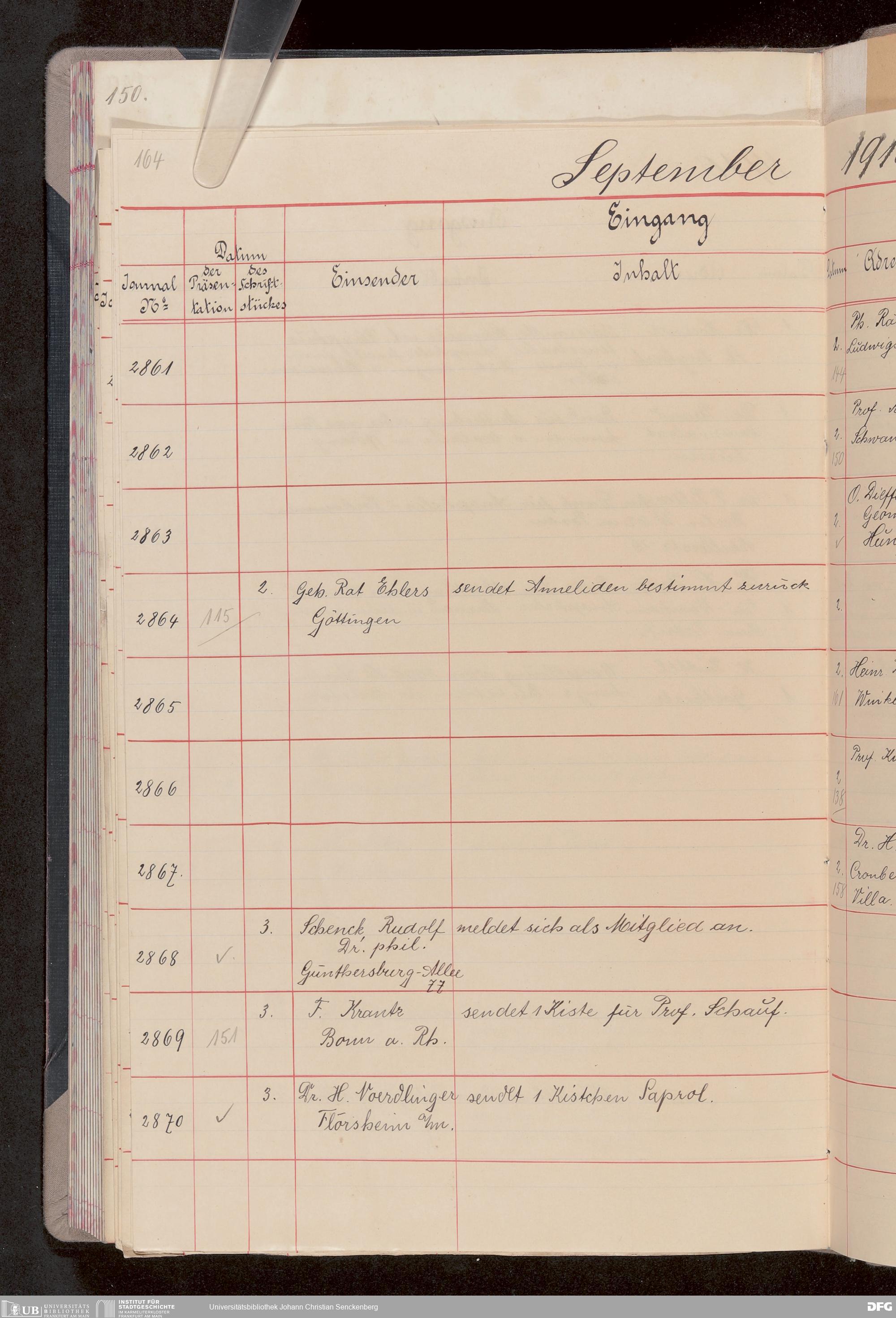 V176 Senckenberg Gesellschaft für Naturforschung, 682 - Journal der eingegangenen und ausgegangenen Briefe