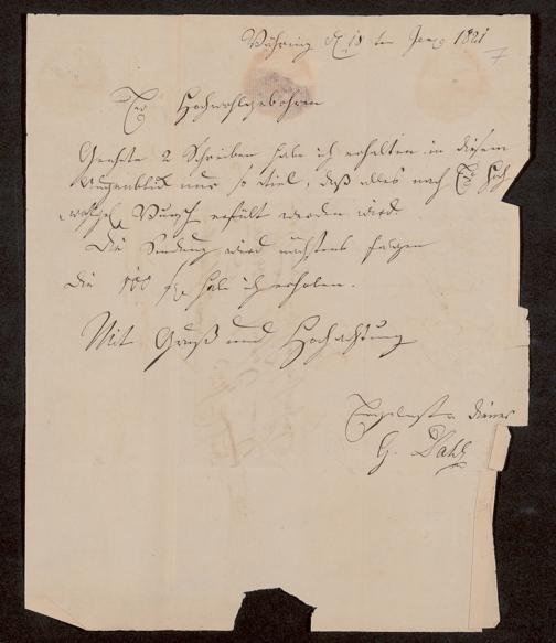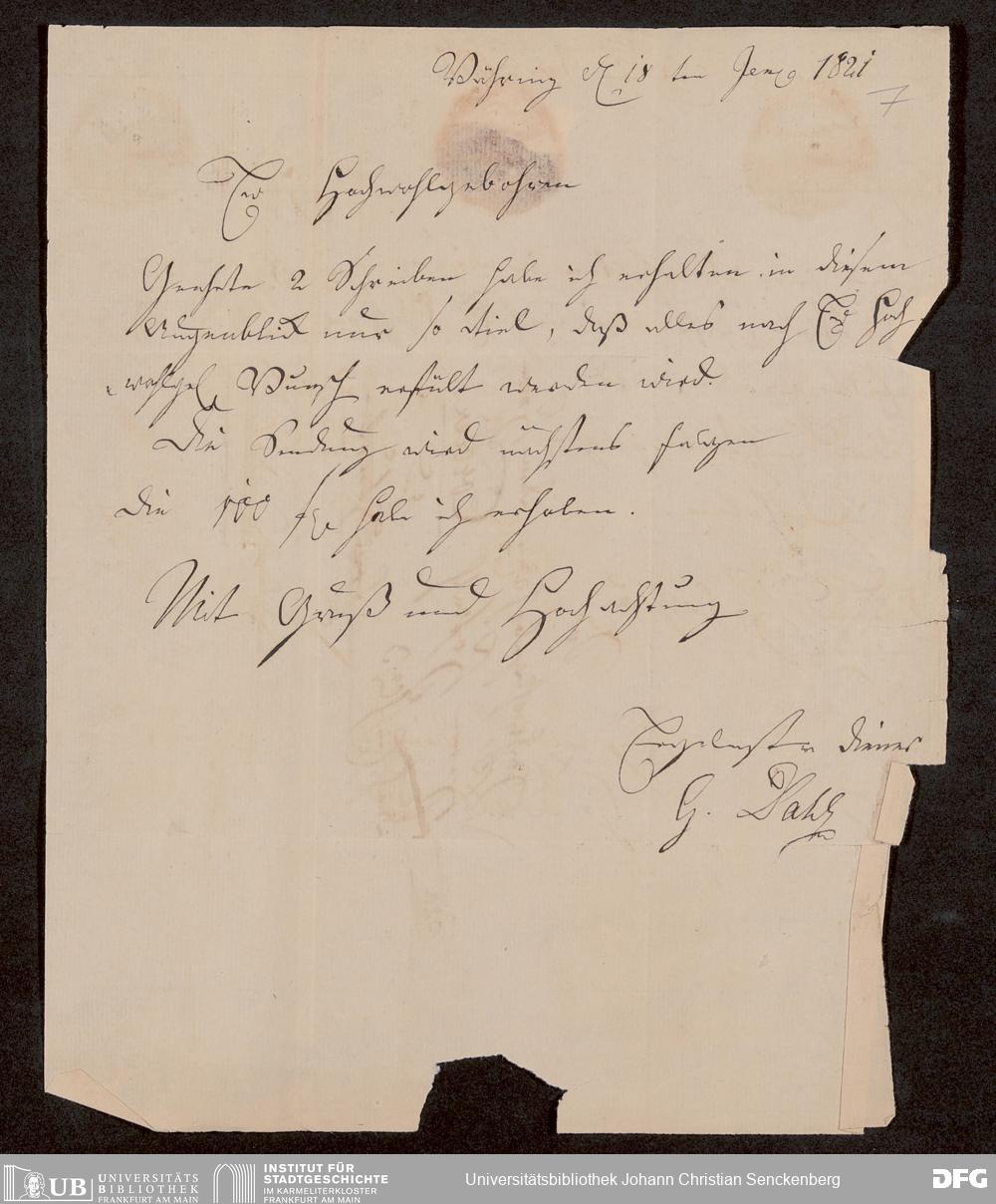 V176 Senckenberg Gesellschaft für Naturforschung, 690 - Briefe von Georg Dahl an Carl Wilhelm Cordier zu entomologischen Themen