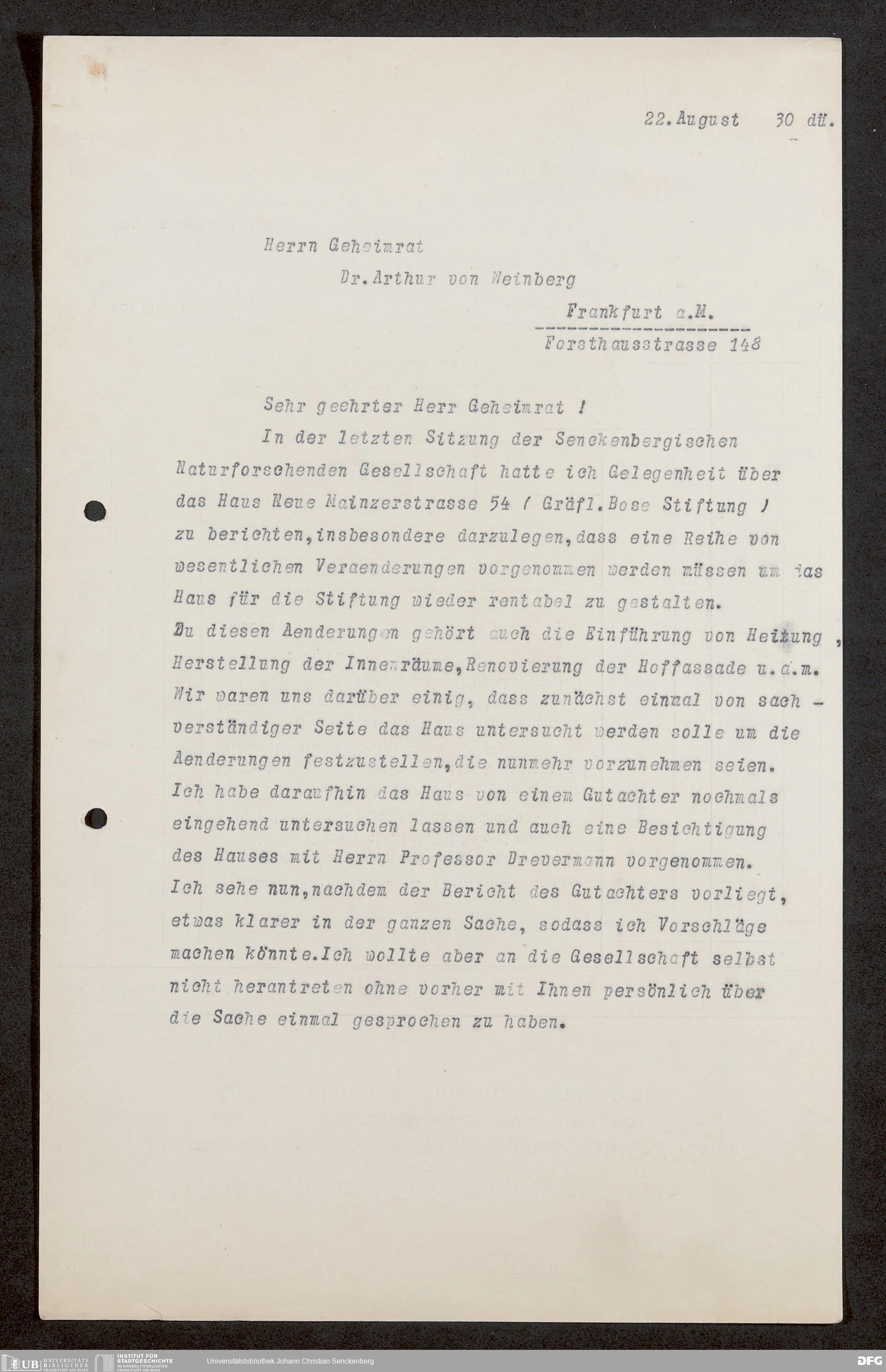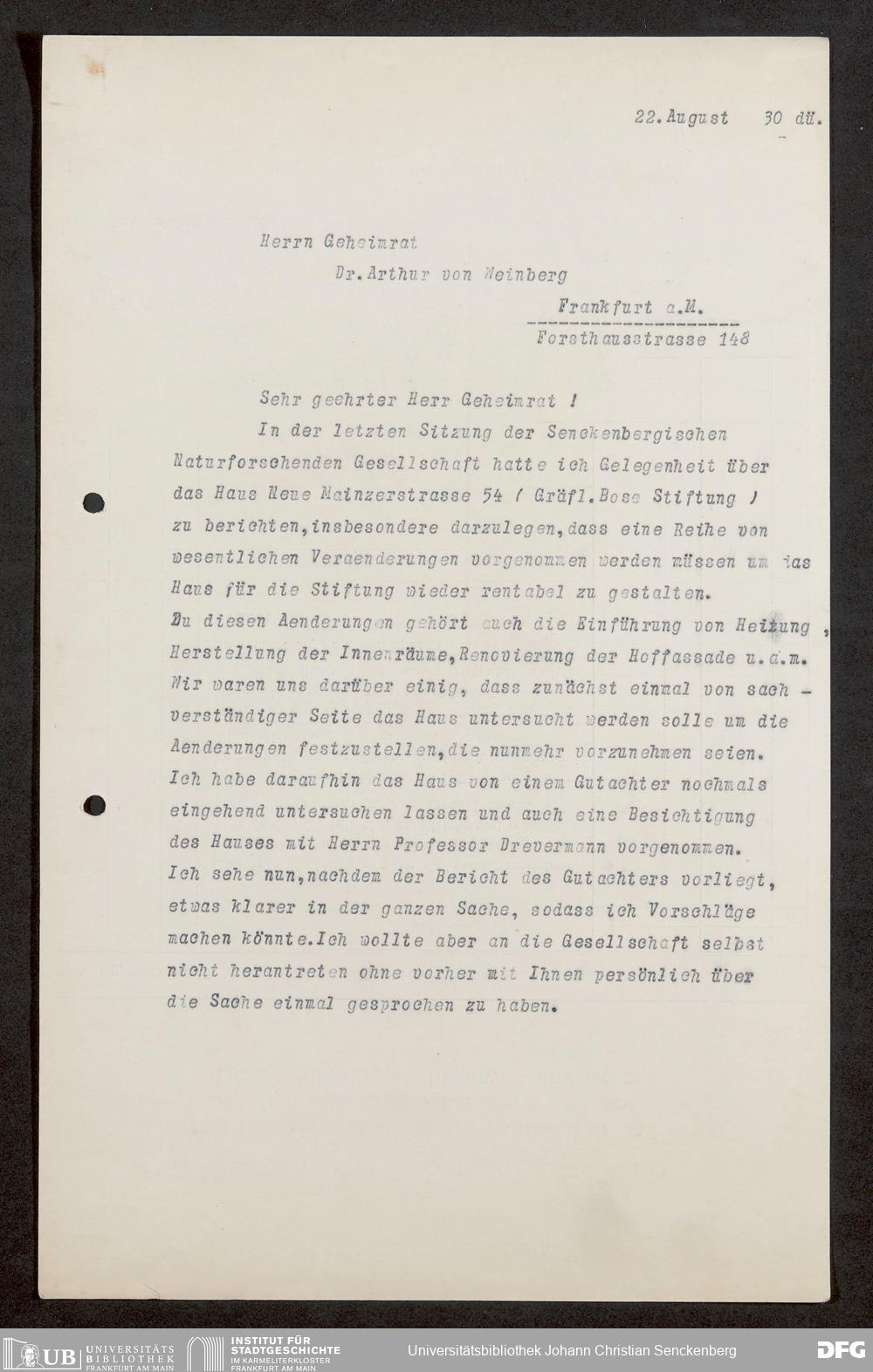 V176 Senckenberg Gesellschaft für Naturforschung, 1728-2 - Verwaltung der Bose-Stiftung