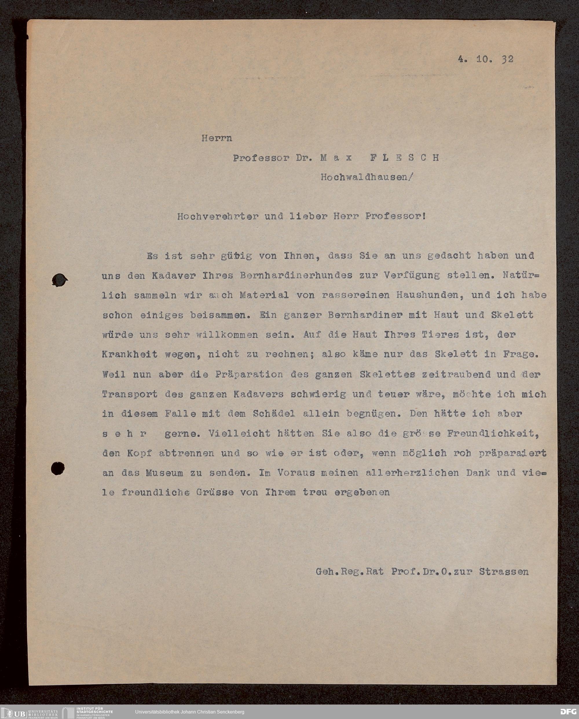V176 Senckenberg Gesellschaft für Naturforschung, 1730 - Korrespondenz der Museumsleitung über Ankauf und Tausch von mammalogischen Exponaten