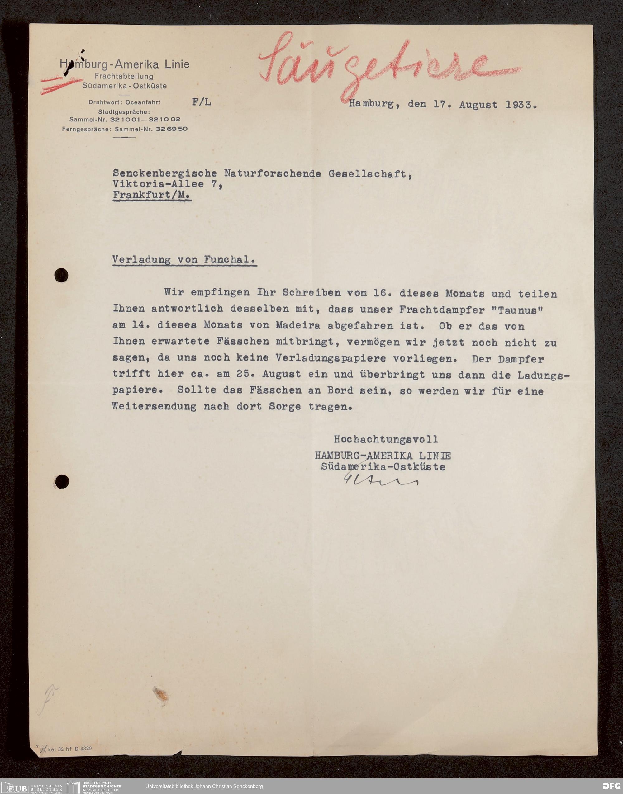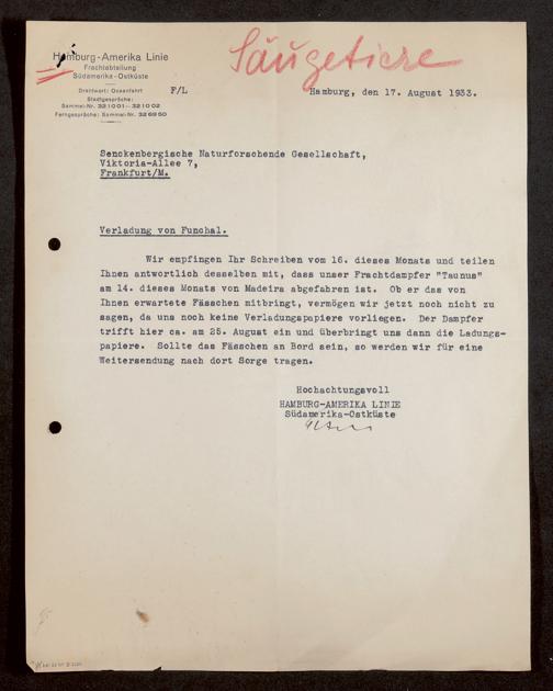 V176 Senckenberg Gesellschaft für Naturforschung, 1730 - Korrespondenz der Museumsleitung über Ankauf und Tausch von mammalogischen Exponaten
