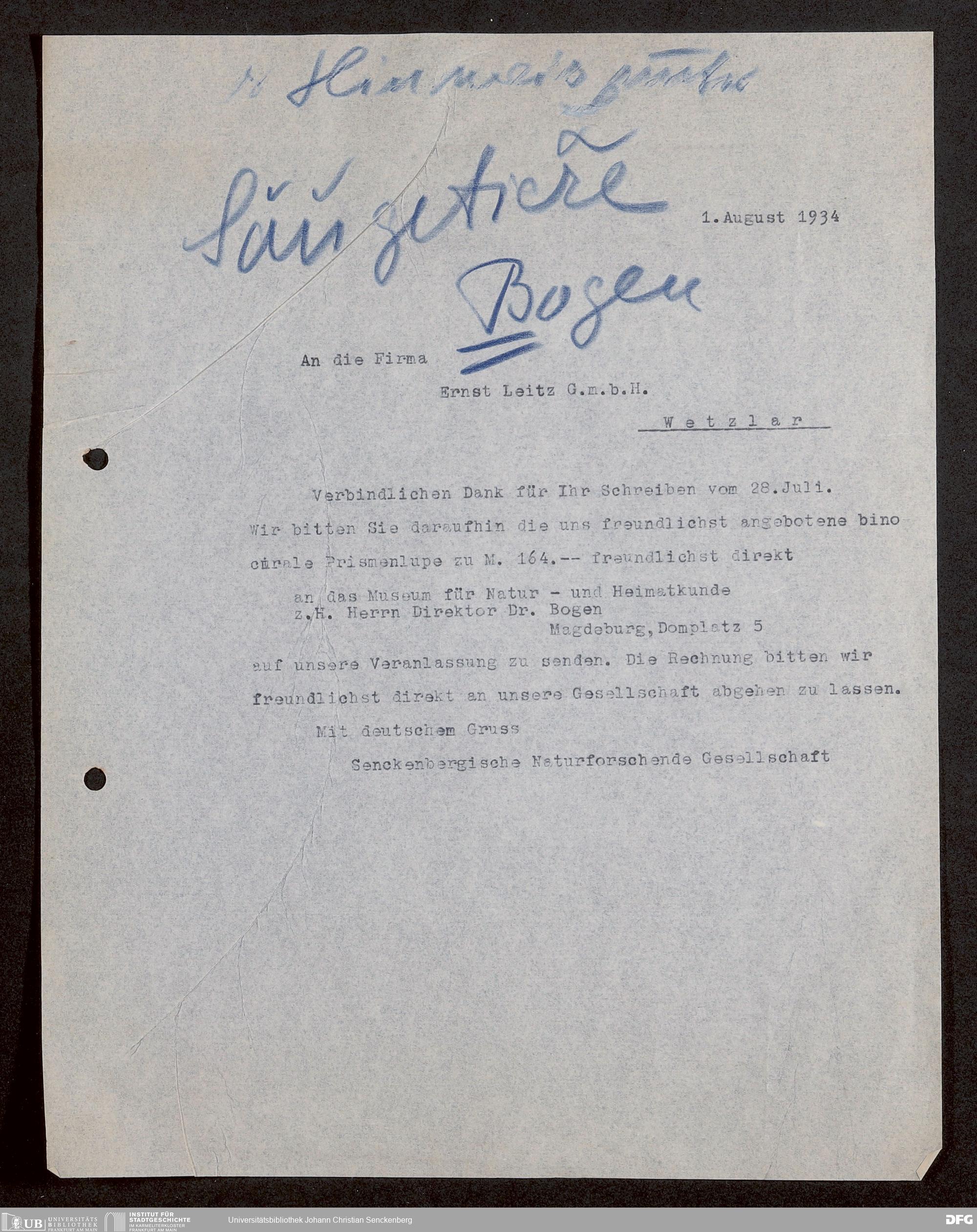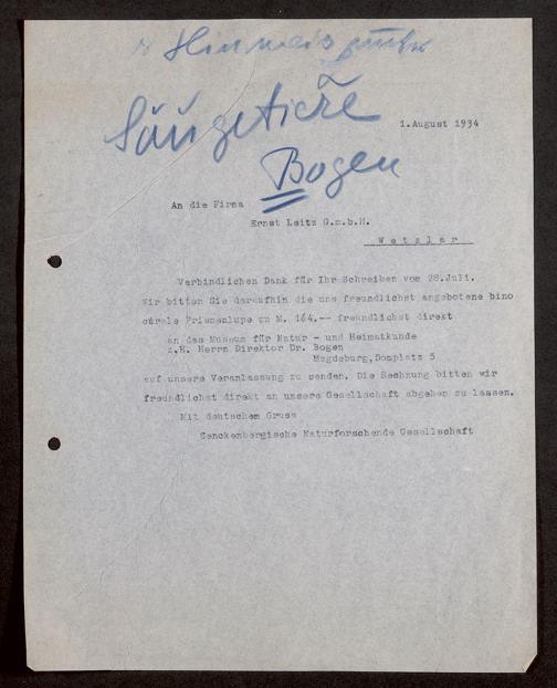 V176 Senckenberg Gesellschaft für Naturforschung, 1730 - Korrespondenz der Museumsleitung über Ankauf und Tausch von mammalogischen Exponaten