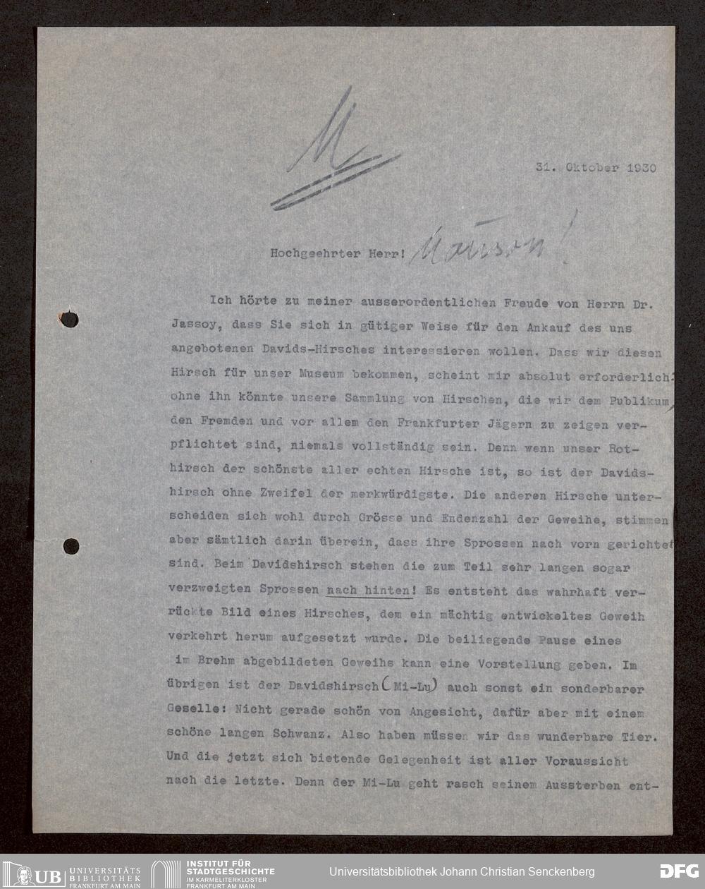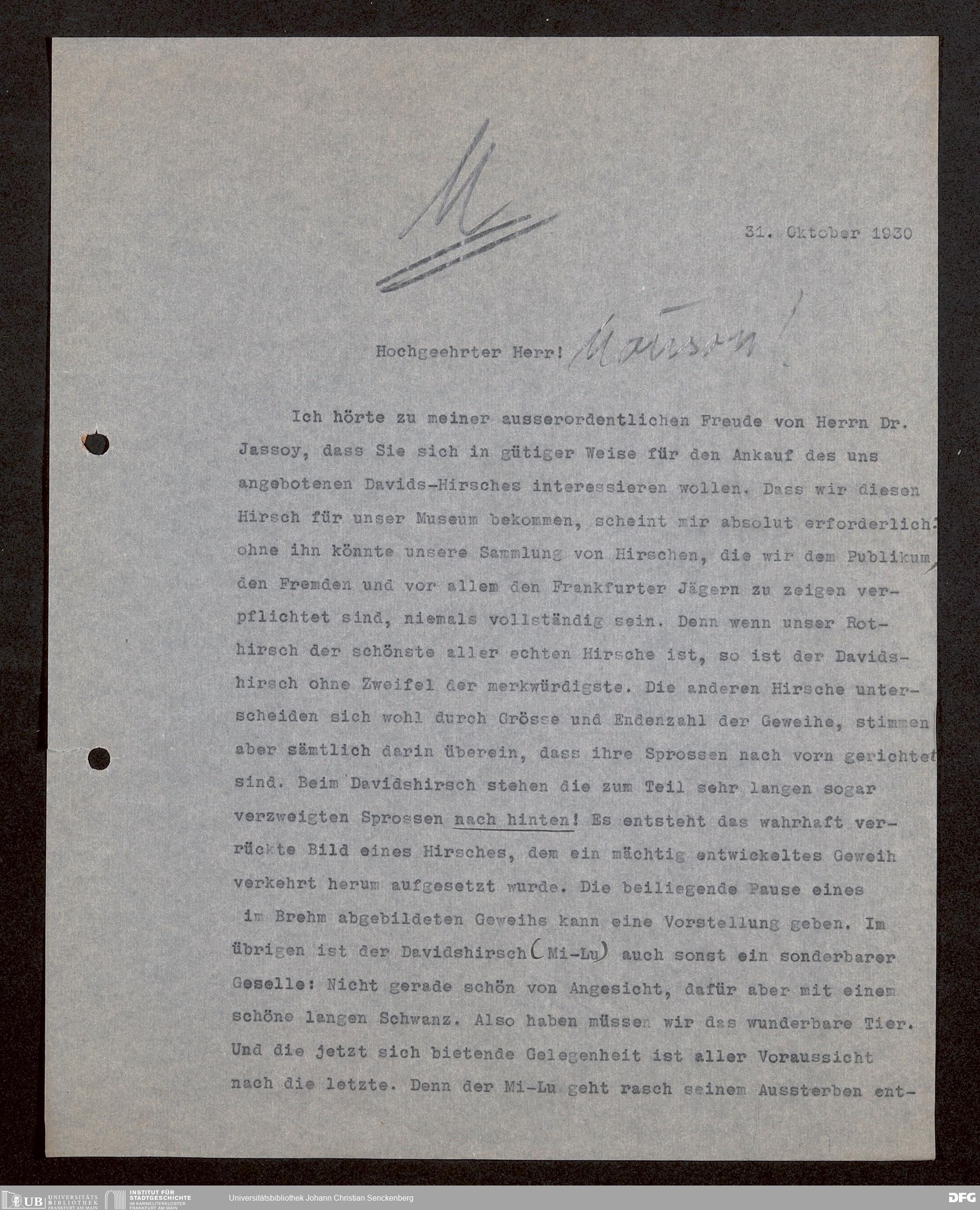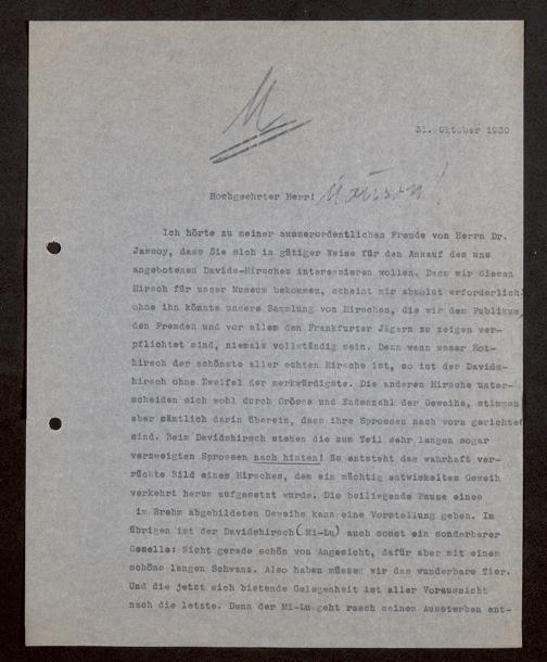 V176 Senckenberg Gesellschaft für Naturforschung, 1730 - Korrespondenz der Museumsleitung über Ankauf und Tausch von mammalogischen Exponaten