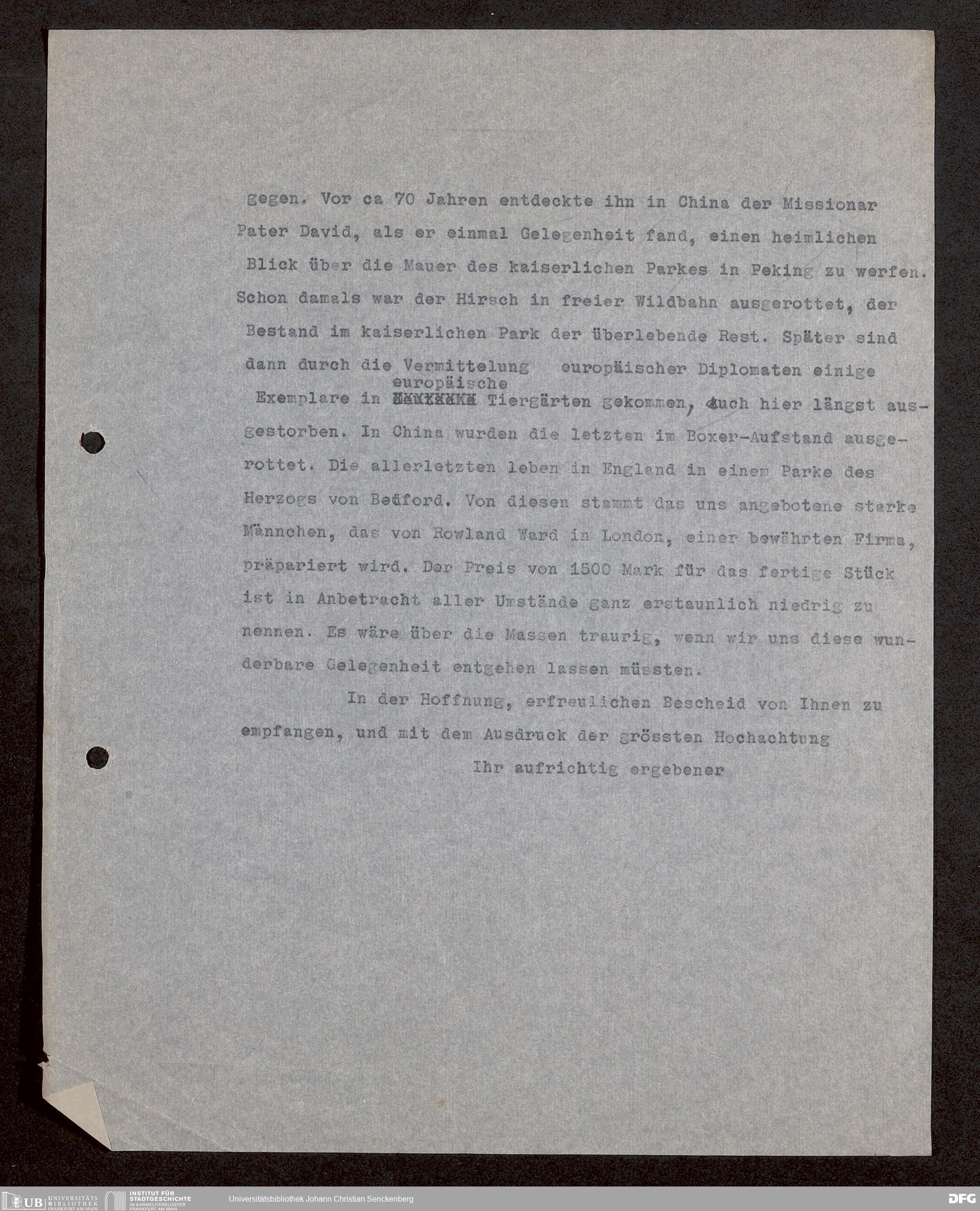 V176 Senckenberg Gesellschaft für Naturforschung, 1730 - Korrespondenz der Museumsleitung über Ankauf und Tausch von mammalogischen Exponaten