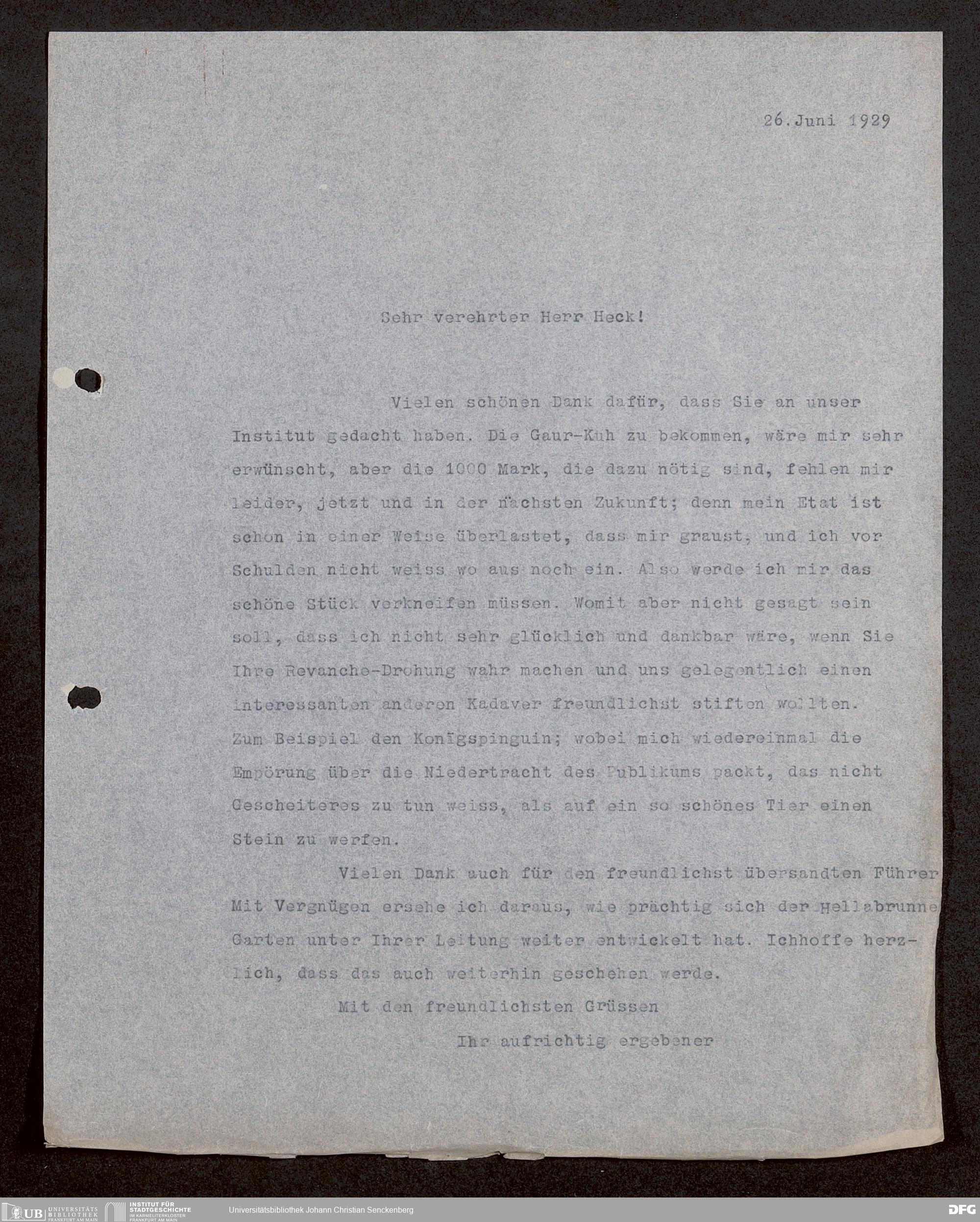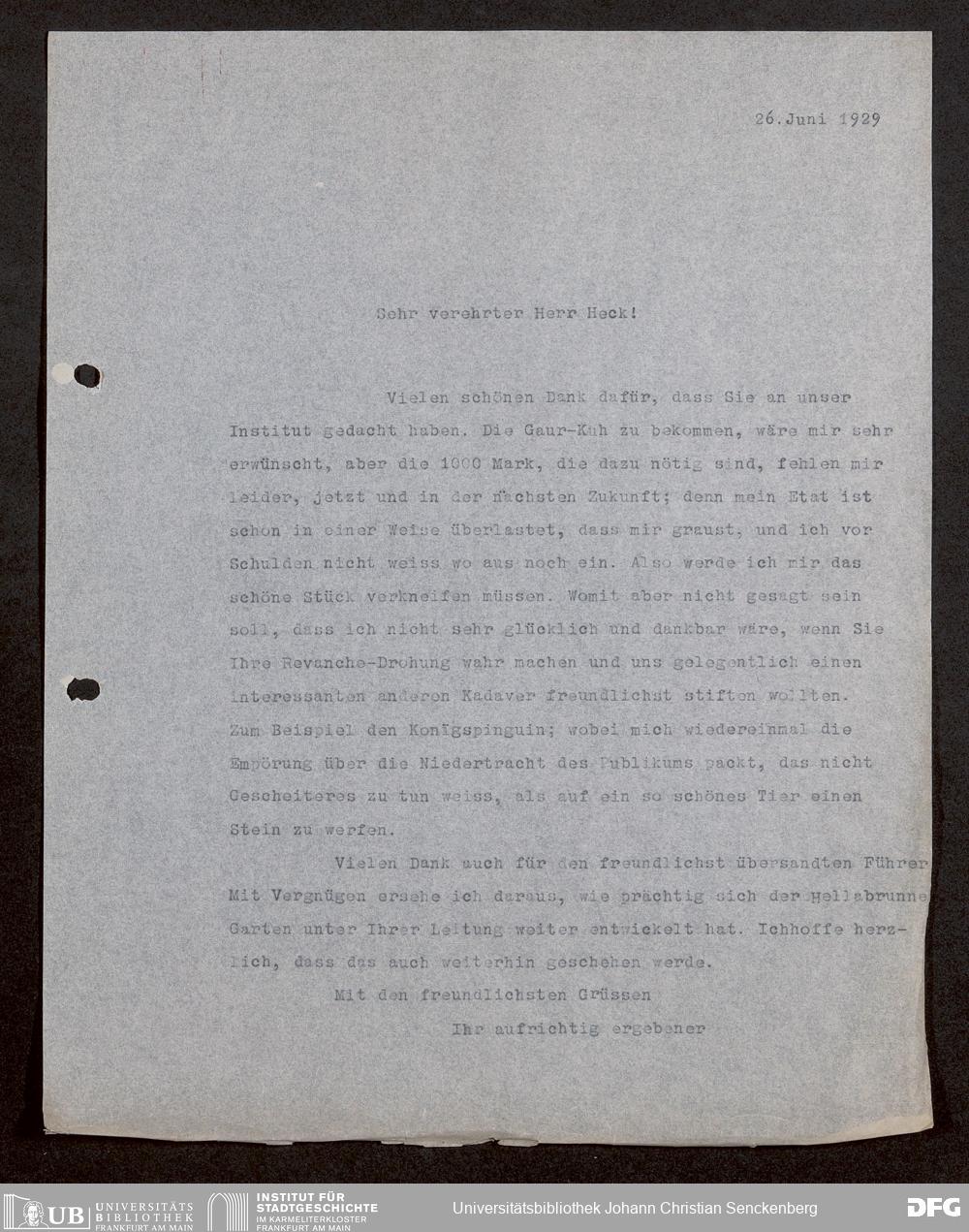 V176 Senckenberg Gesellschaft für Naturforschung, 1730 - Korrespondenz der Museumsleitung über Ankauf und Tausch von mammalogischen Exponaten