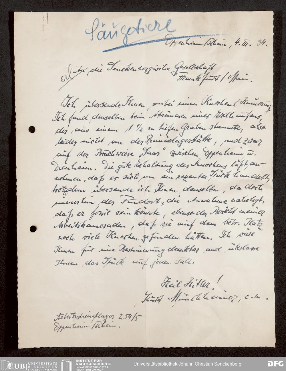 V176 Senckenberg Gesellschaft für Naturforschung, 1730 - Korrespondenz der Museumsleitung über Ankauf und Tausch von mammalogischen Exponaten