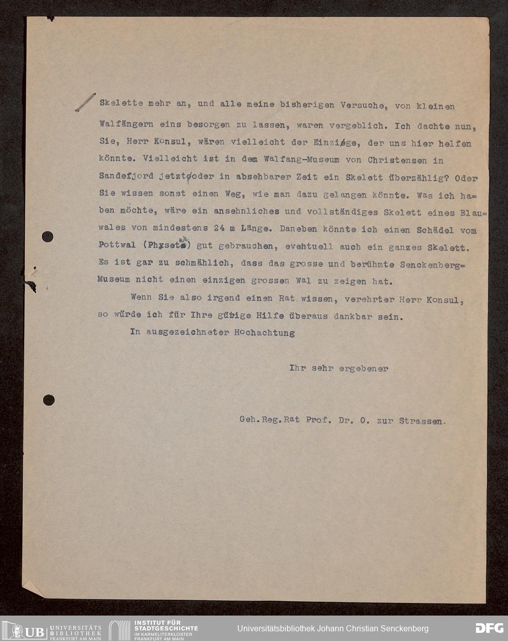 V176 Senckenberg Gesellschaft für Naturforschung, 1730 - Korrespondenz der Museumsleitung über Ankauf und Tausch von mammalogischen Exponaten