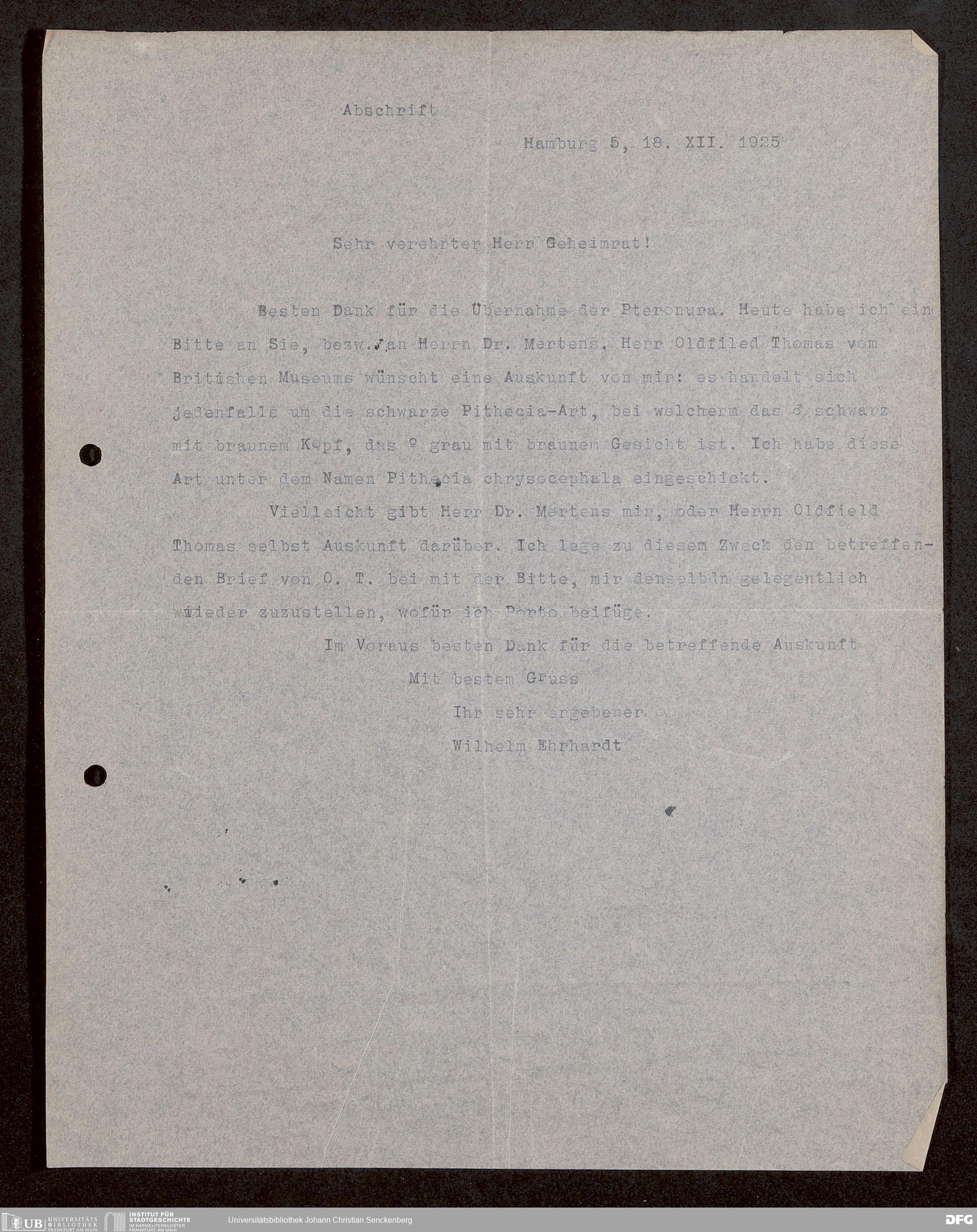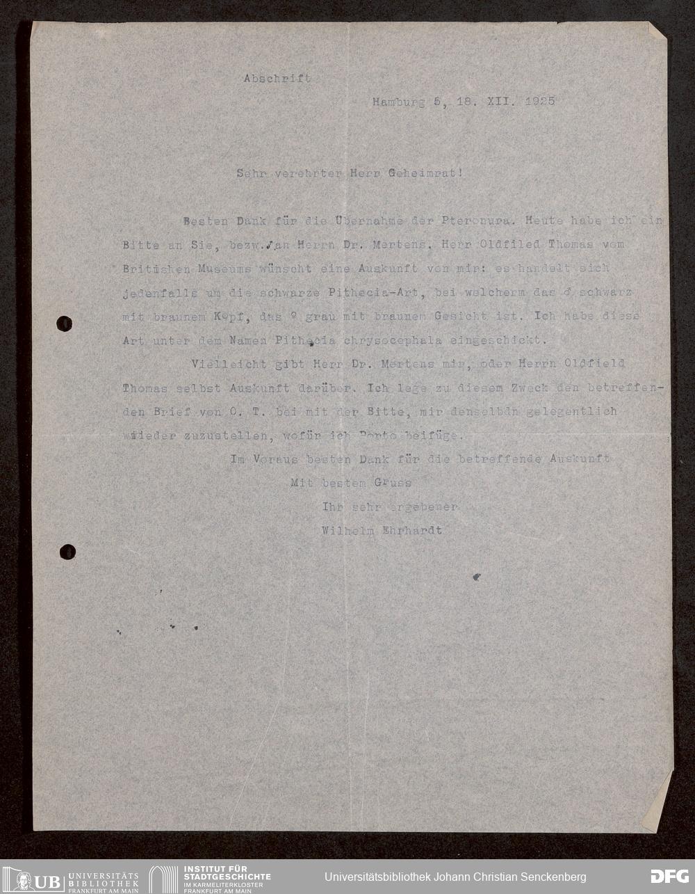 V176 Senckenberg Gesellschaft für Naturforschung, 1730 - Korrespondenz der Museumsleitung über Ankauf und Tausch von mammalogischen Exponaten