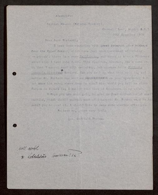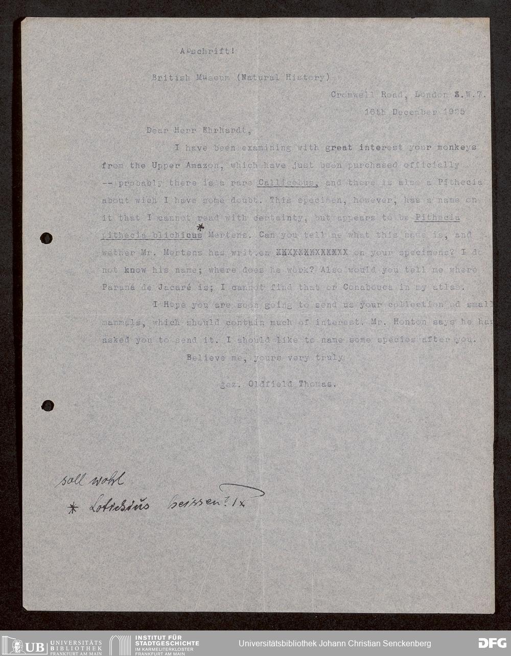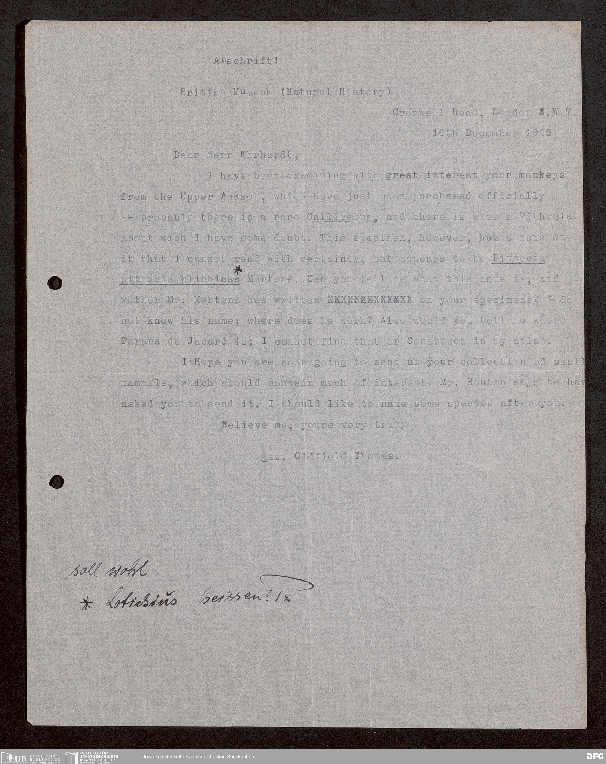 V176 Senckenberg Gesellschaft für Naturforschung, 1730 - Korrespondenz der Museumsleitung über Ankauf und Tausch von mammalogischen Exponaten
