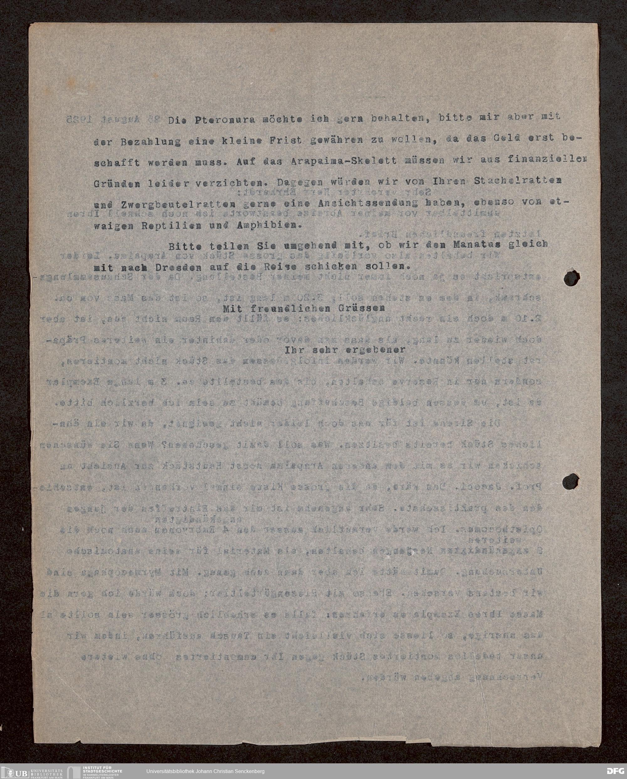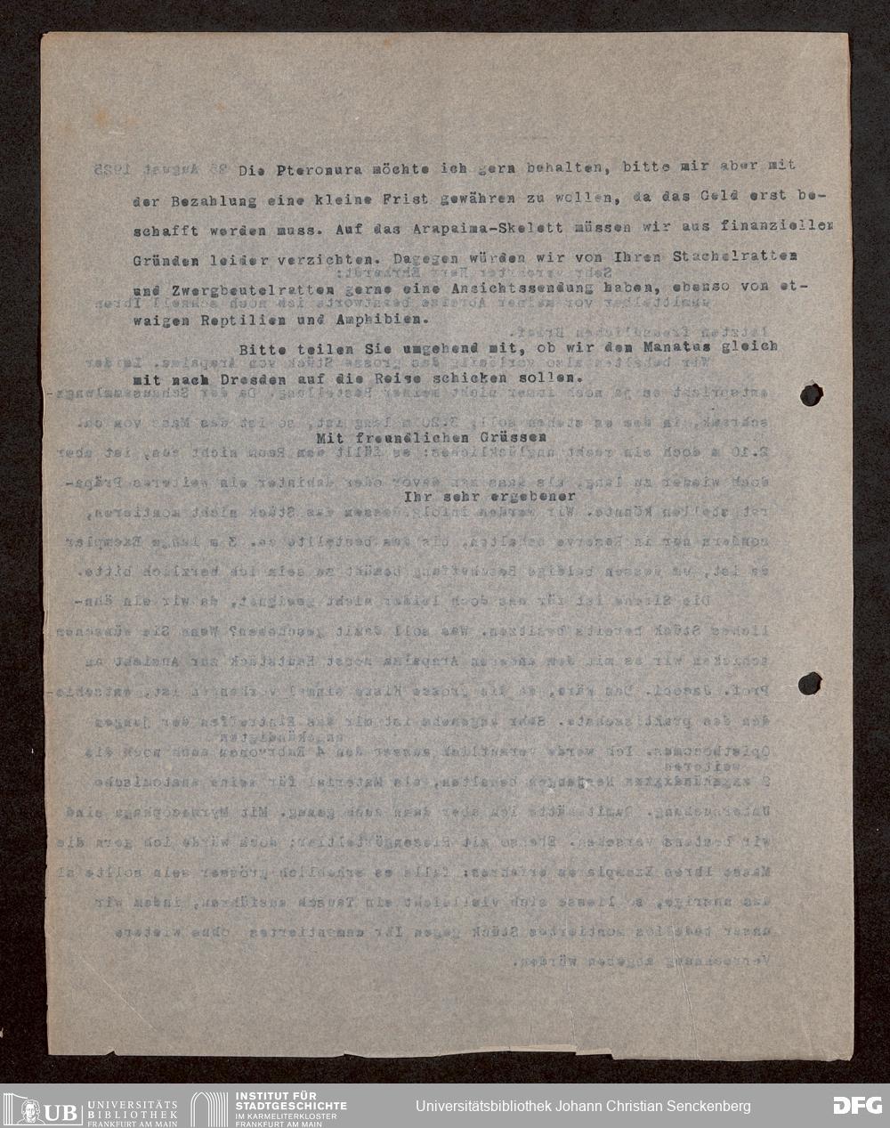 V176 Senckenberg Gesellschaft für Naturforschung, 1730 - Korrespondenz der Museumsleitung über Ankauf und Tausch von mammalogischen Exponaten