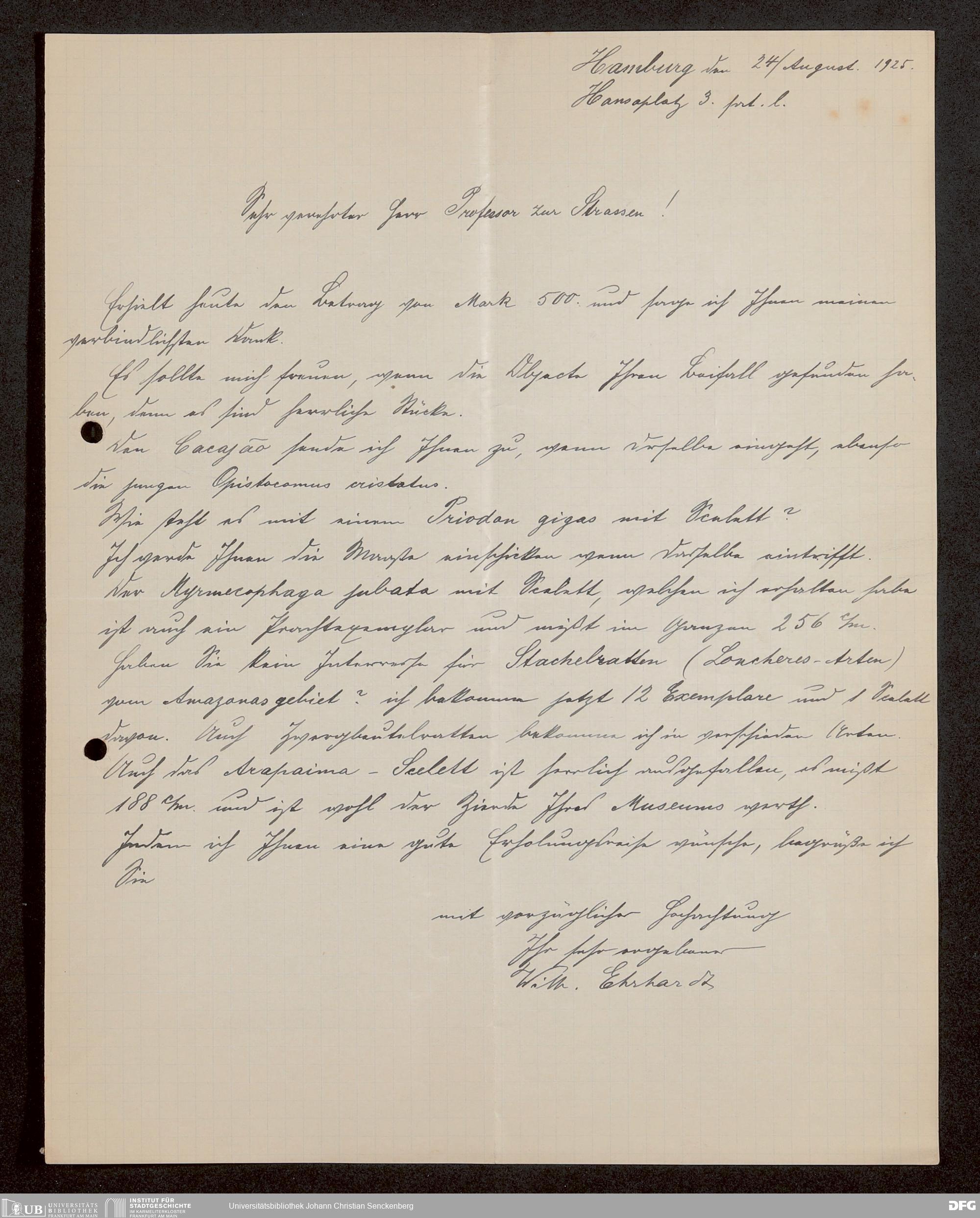 V176 Senckenberg Gesellschaft für Naturforschung, 1730 - Korrespondenz der Museumsleitung über Ankauf und Tausch von mammalogischen Exponaten