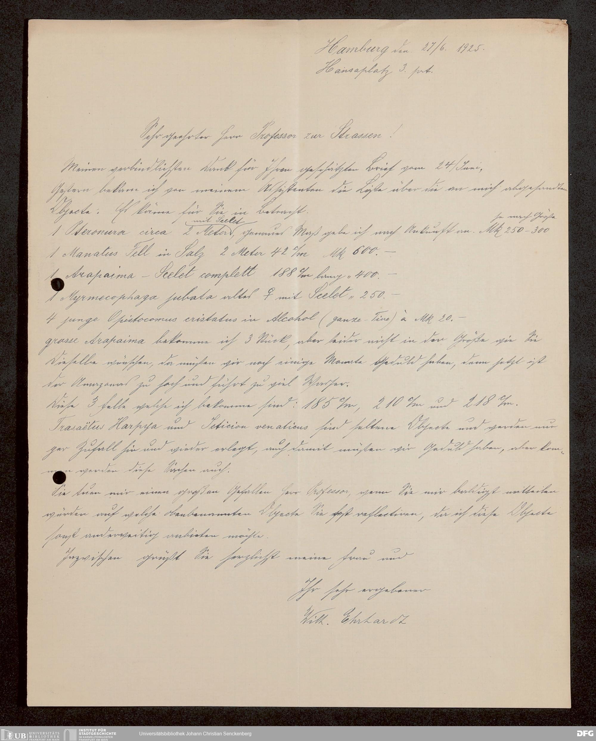 V176 Senckenberg Gesellschaft für Naturforschung, 1730 - Korrespondenz der Museumsleitung über Ankauf und Tausch von mammalogischen Exponaten