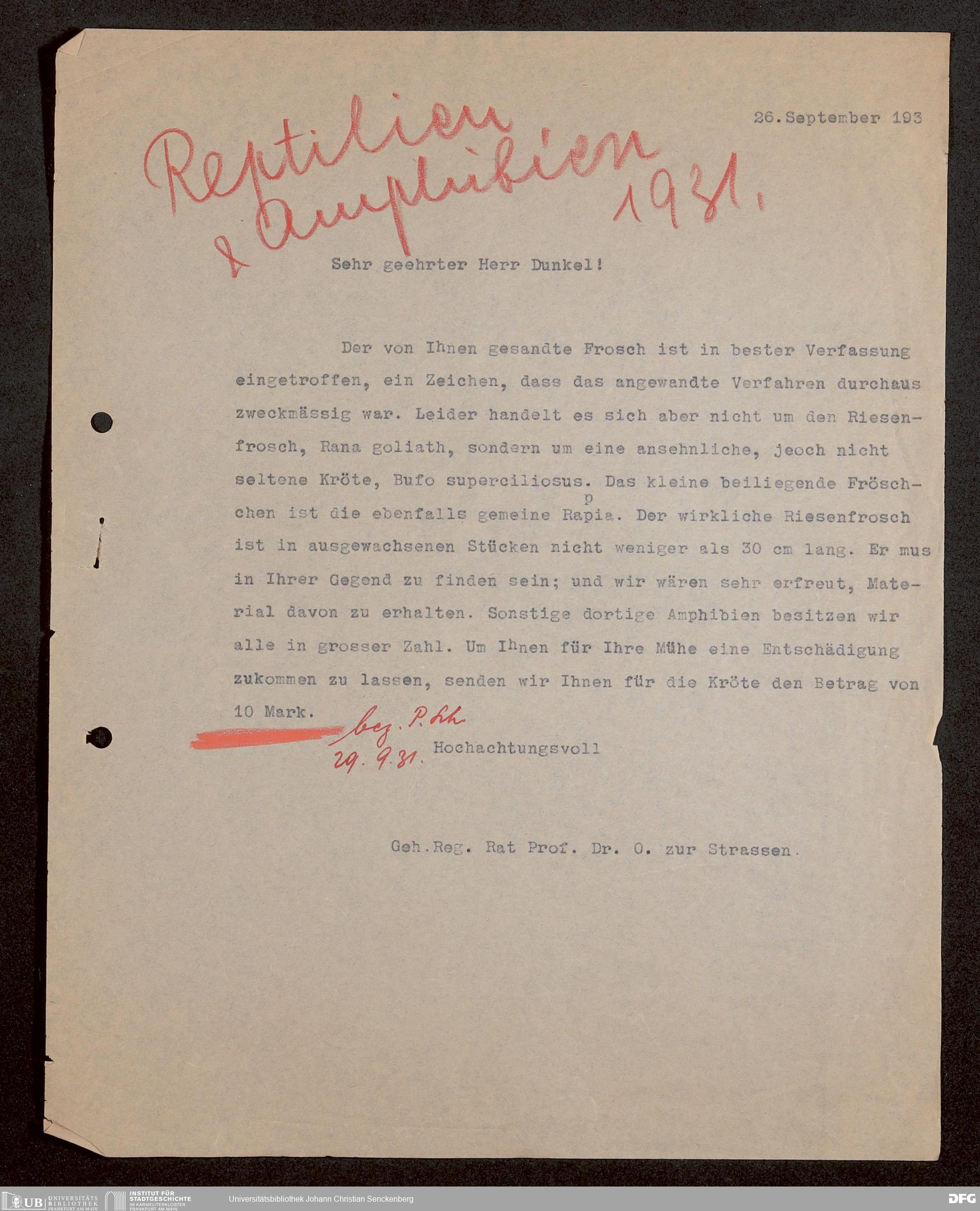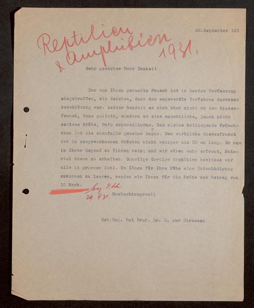 V176 Senckenberg Gesellschaft für Naturforschung, 1731 - Korrespondenz der Museumsleitung über Ankauf und Tausch von herpetologischen Exponaten