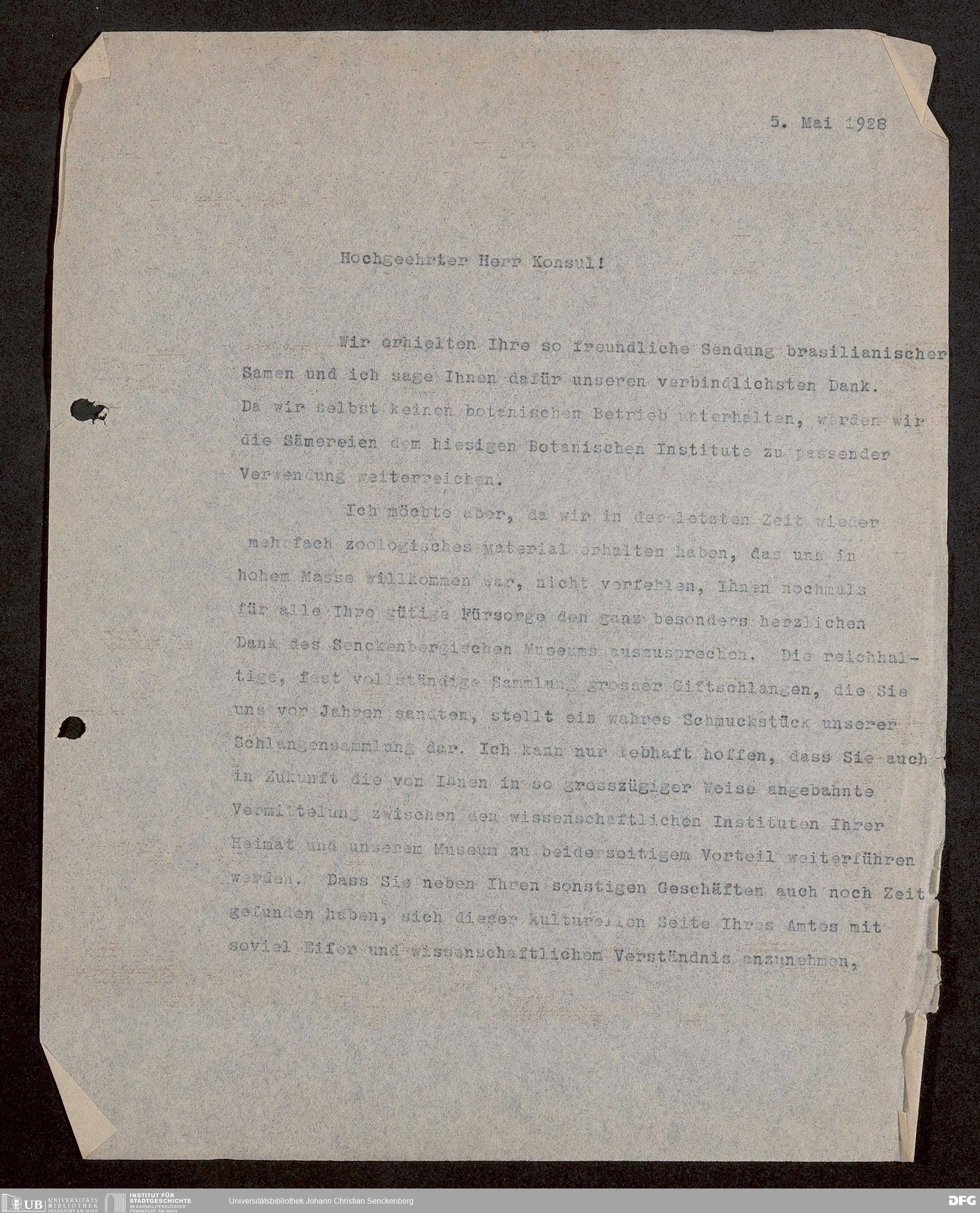 V176 Senckenberg Gesellschaft für Naturforschung, 1731 - Korrespondenz der Museumsleitung über Ankauf und Tausch von herpetologischen Exponaten