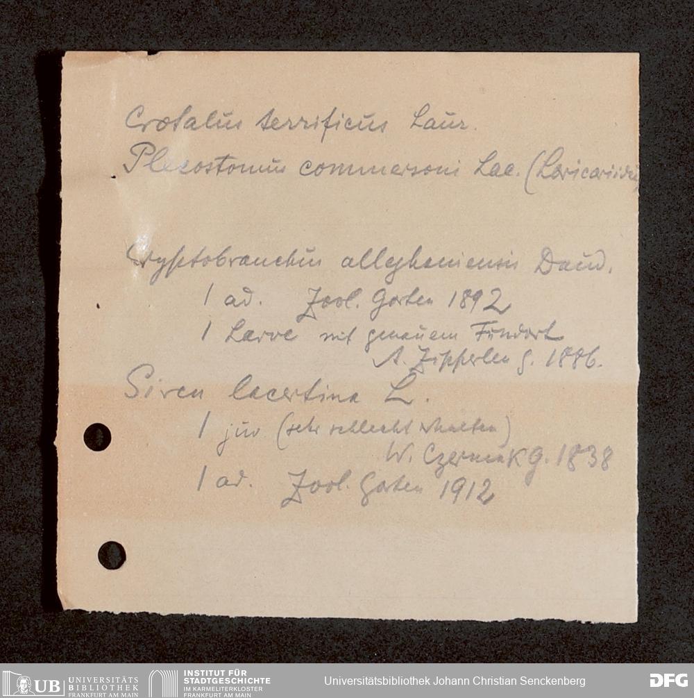 V176 Senckenberg Gesellschaft für Naturforschung, 1731 - Korrespondenz der Museumsleitung über Ankauf und Tausch von herpetologischen Exponaten