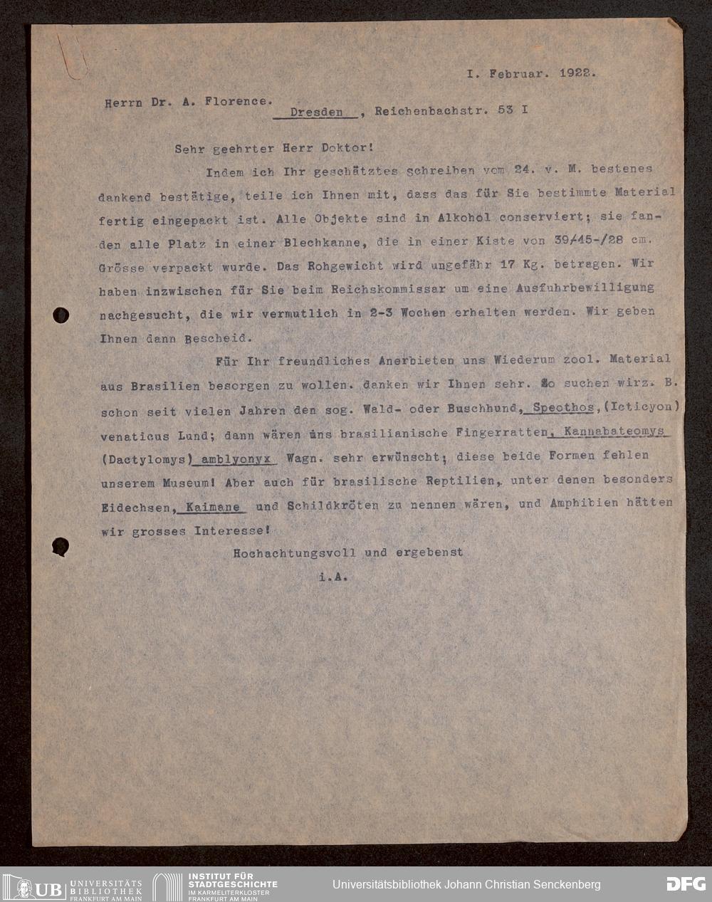 V176 Senckenberg Gesellschaft für Naturforschung, 1731 - Korrespondenz der Museumsleitung über Ankauf und Tausch von herpetologischen Exponaten