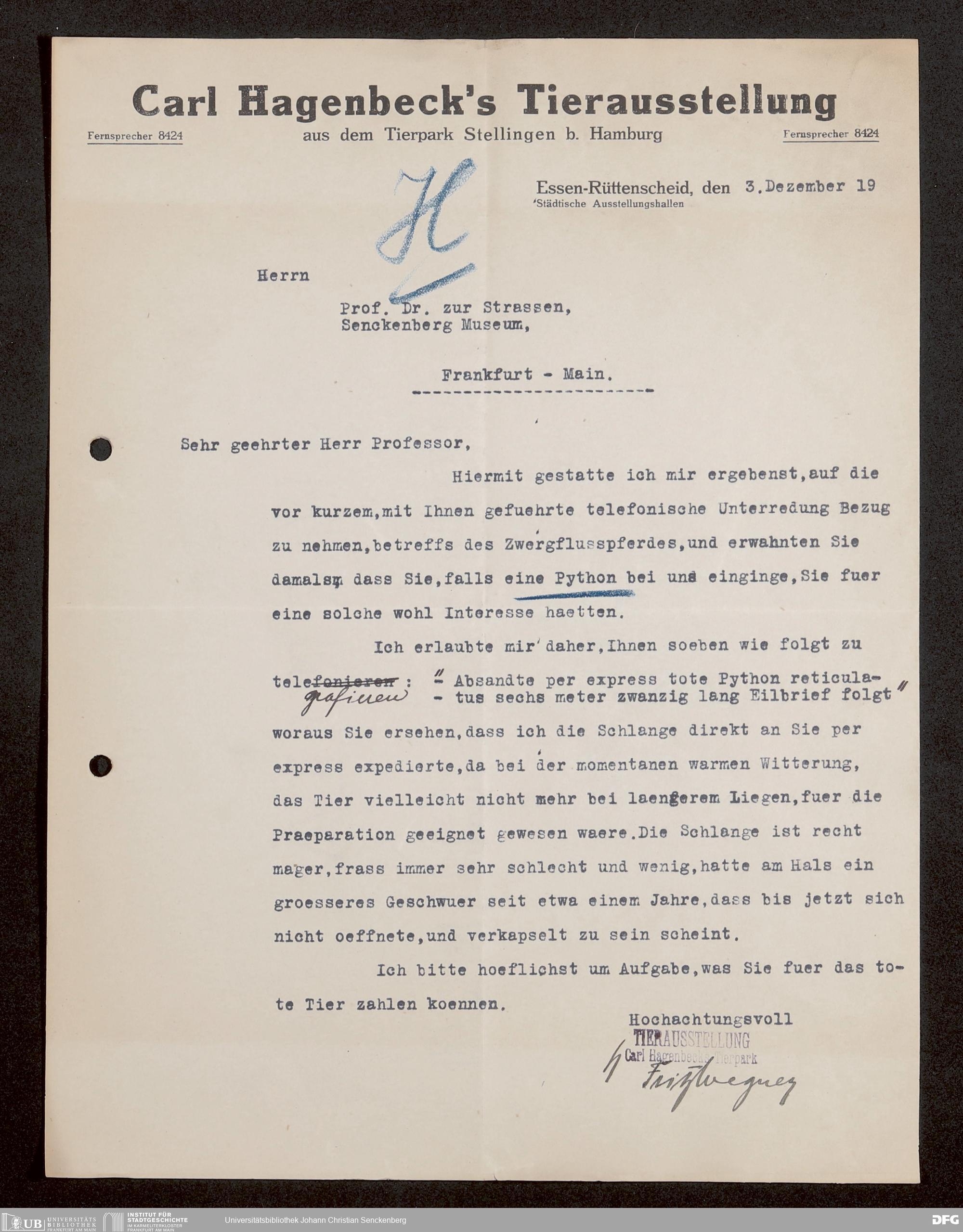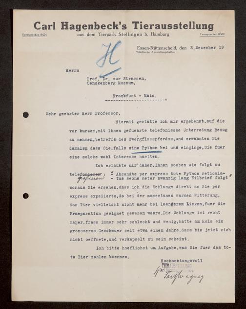 V176 Senckenberg Gesellschaft für Naturforschung, 1731 - Korrespondenz der Museumsleitung über Ankauf und Tausch von herpetologischen Exponaten