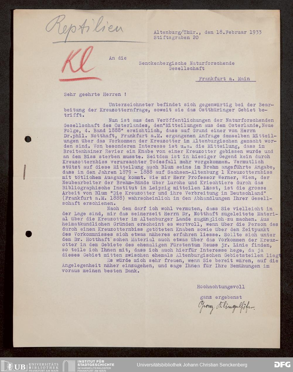 V176 Senckenberg Gesellschaft für Naturforschung, 1731 - Korrespondenz der Museumsleitung über Ankauf und Tausch von herpetologischen Exponaten