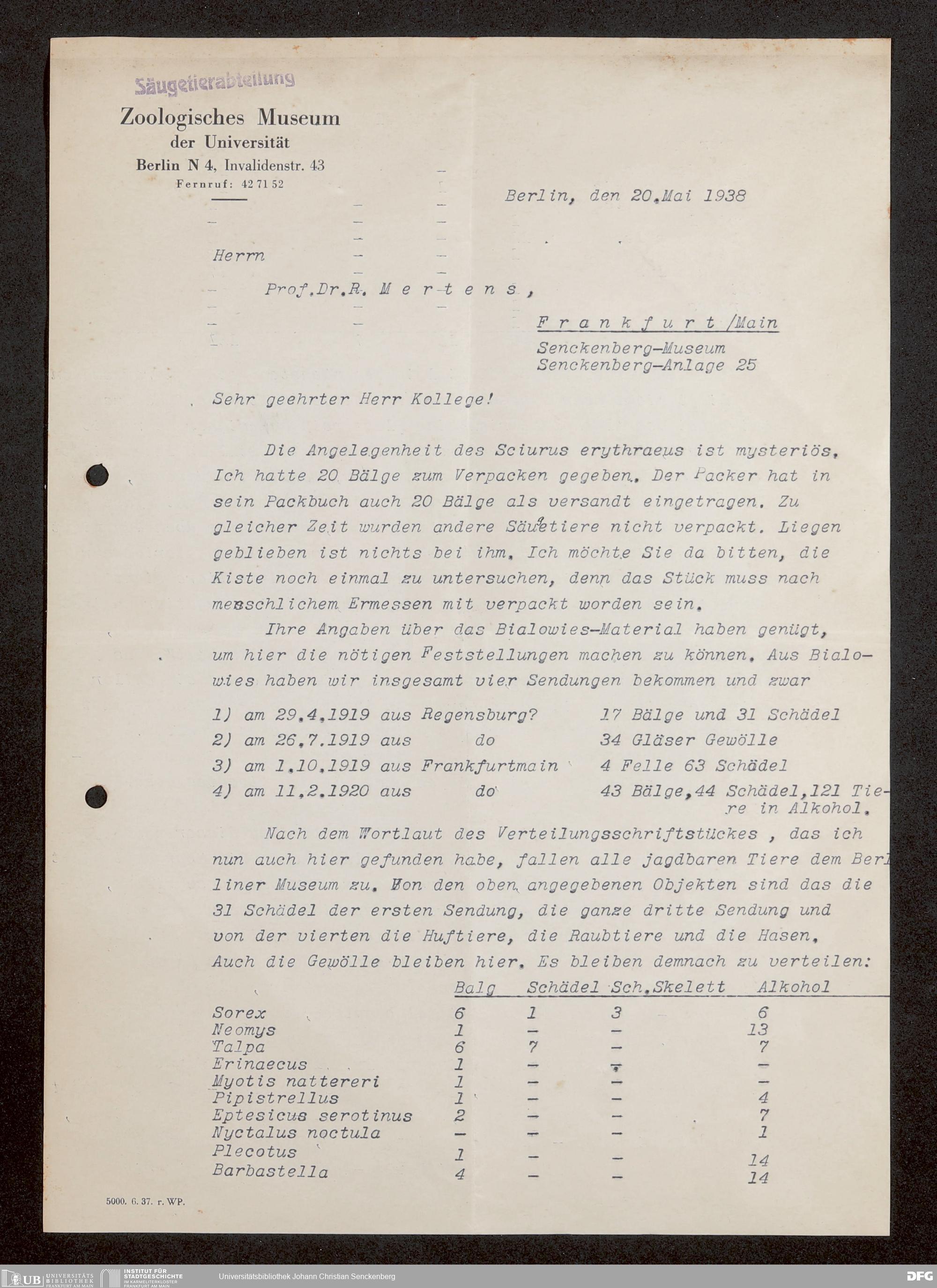 V176 Senckenberg Gesellschaft für Naturforschung, 1744-2 - Korrespondenz von Robert Mertens: P-Z