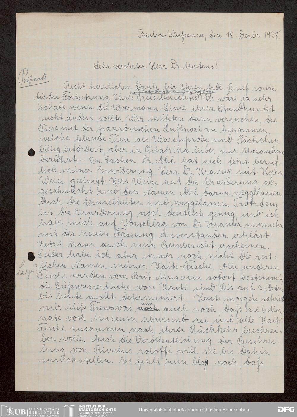 V176 Senckenberg Gesellschaft für Naturforschung, 1744-2 - Korrespondenz von Robert Mertens: P-Z