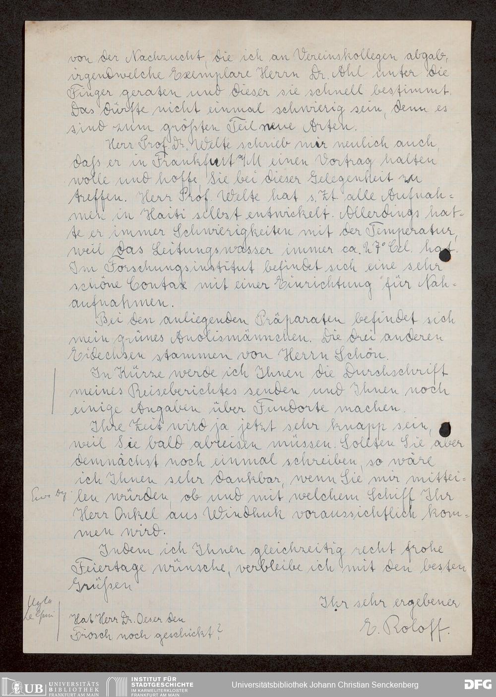 V176 Senckenberg Gesellschaft für Naturforschung, 1744-2 - Korrespondenz von Robert Mertens: P-Z
