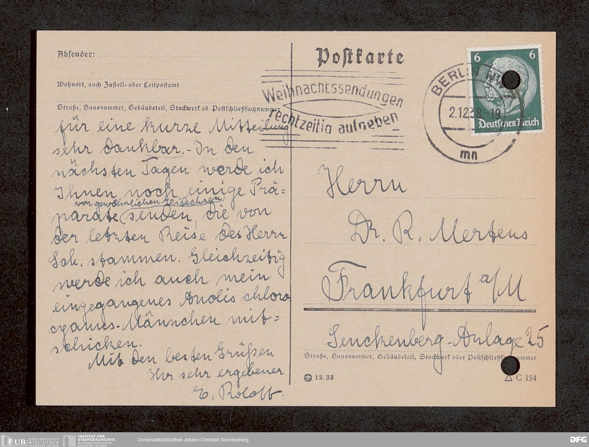 V176 Senckenberg Gesellschaft für Naturforschung, 1744-2 - Korrespondenz von Robert Mertens: P-Z