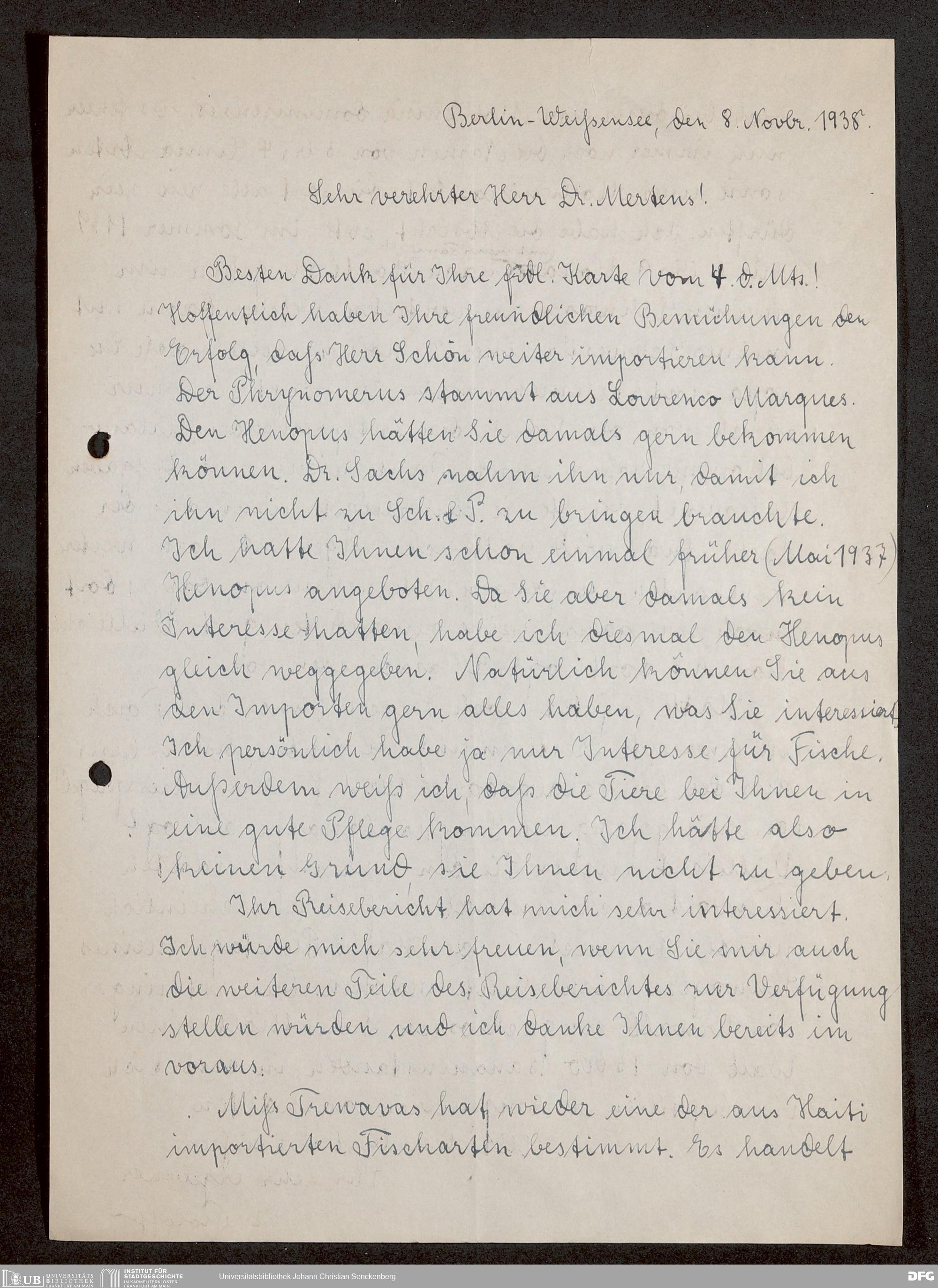 V176 Senckenberg Gesellschaft für Naturforschung, 1744-2 - Korrespondenz von Robert Mertens: P-Z