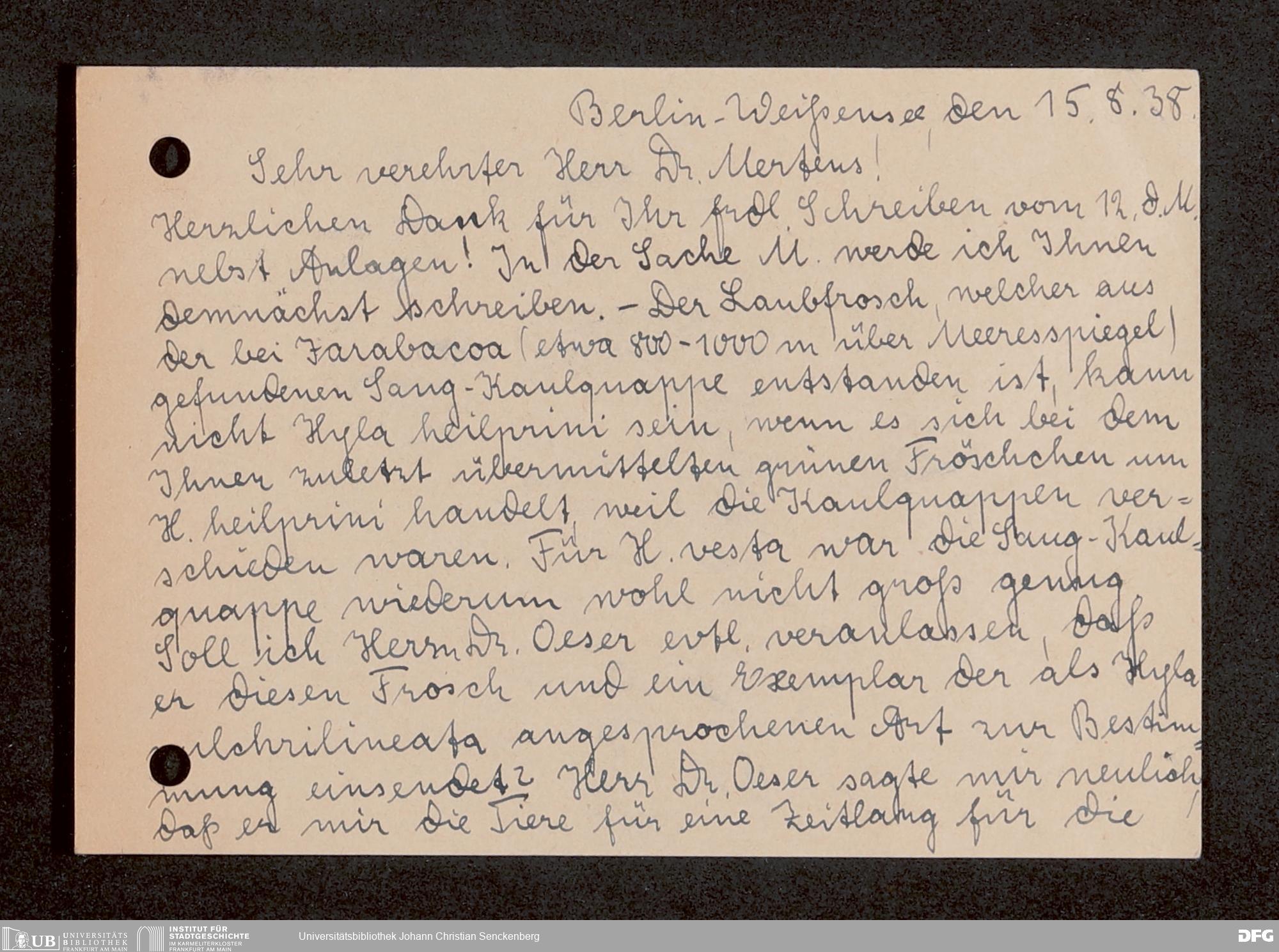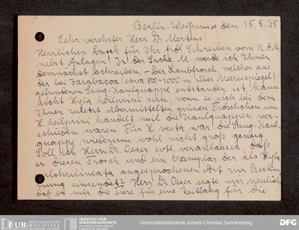 V176 Senckenberg Gesellschaft für Naturforschung, 1744-2 - Korrespondenz von Robert Mertens: P-Z