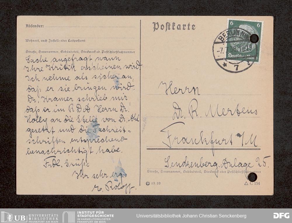 V176 Senckenberg Gesellschaft für Naturforschung, 1744-2 - Korrespondenz von Robert Mertens: P-Z