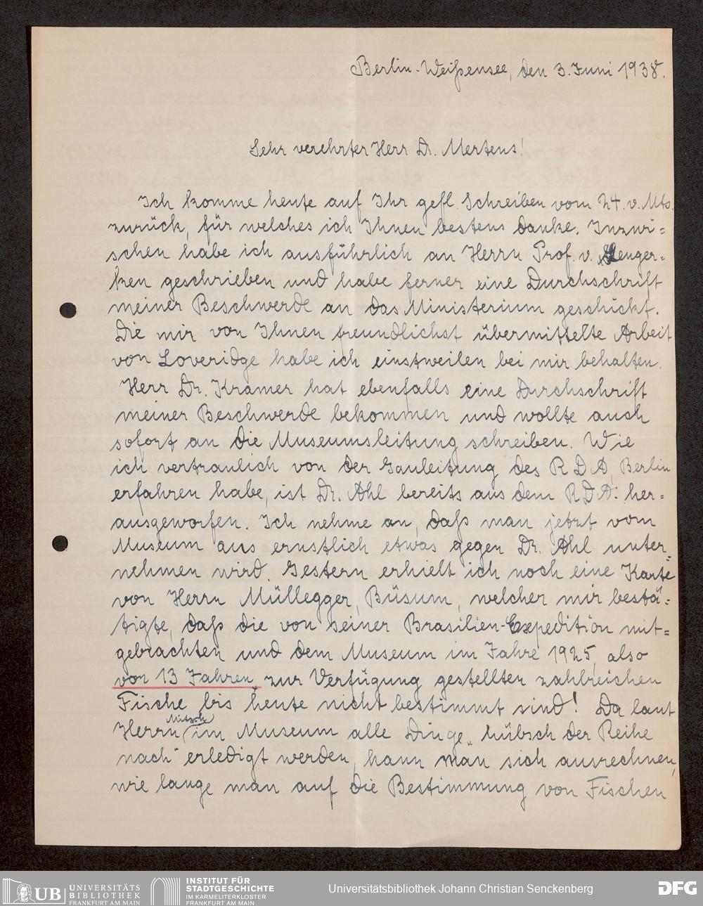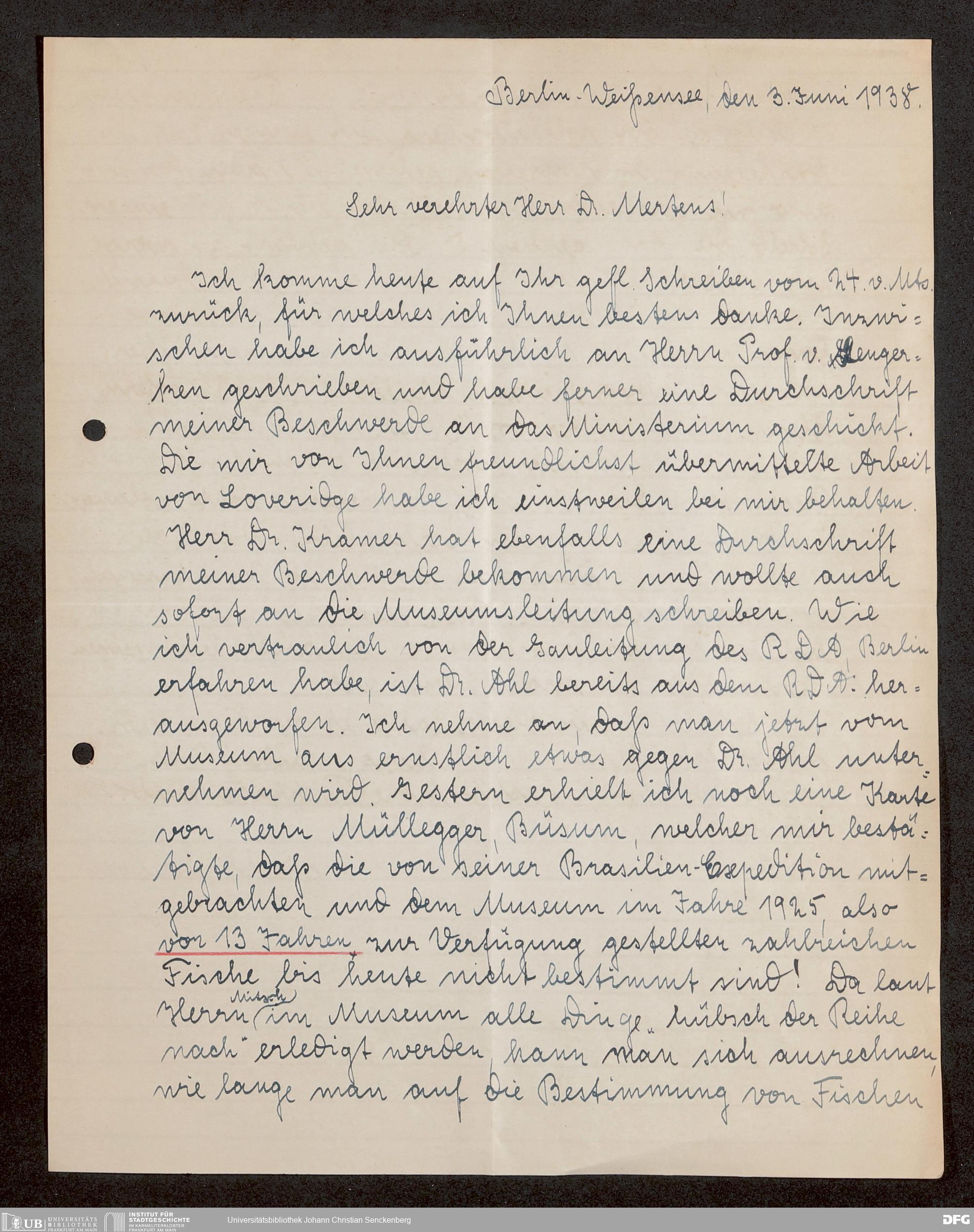 V176 Senckenberg Gesellschaft für Naturforschung, 1744-2 - Korrespondenz von Robert Mertens: P-Z