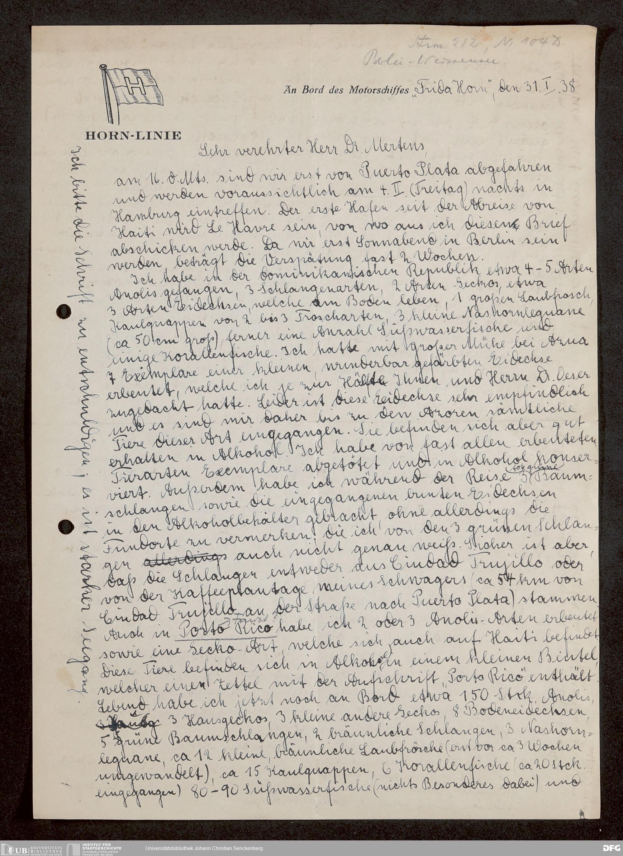 V176 Senckenberg Gesellschaft für Naturforschung, 1744-2 - Korrespondenz von Robert Mertens: P-Z