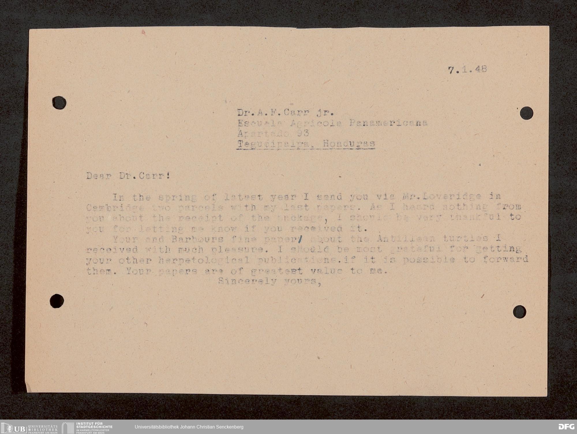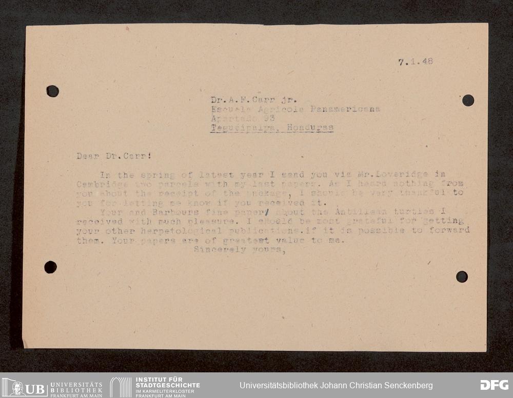 V176 Senckenberg Gesellschaft für Naturforschung, 1759-1 - Korrespondenz von Robert Mertens