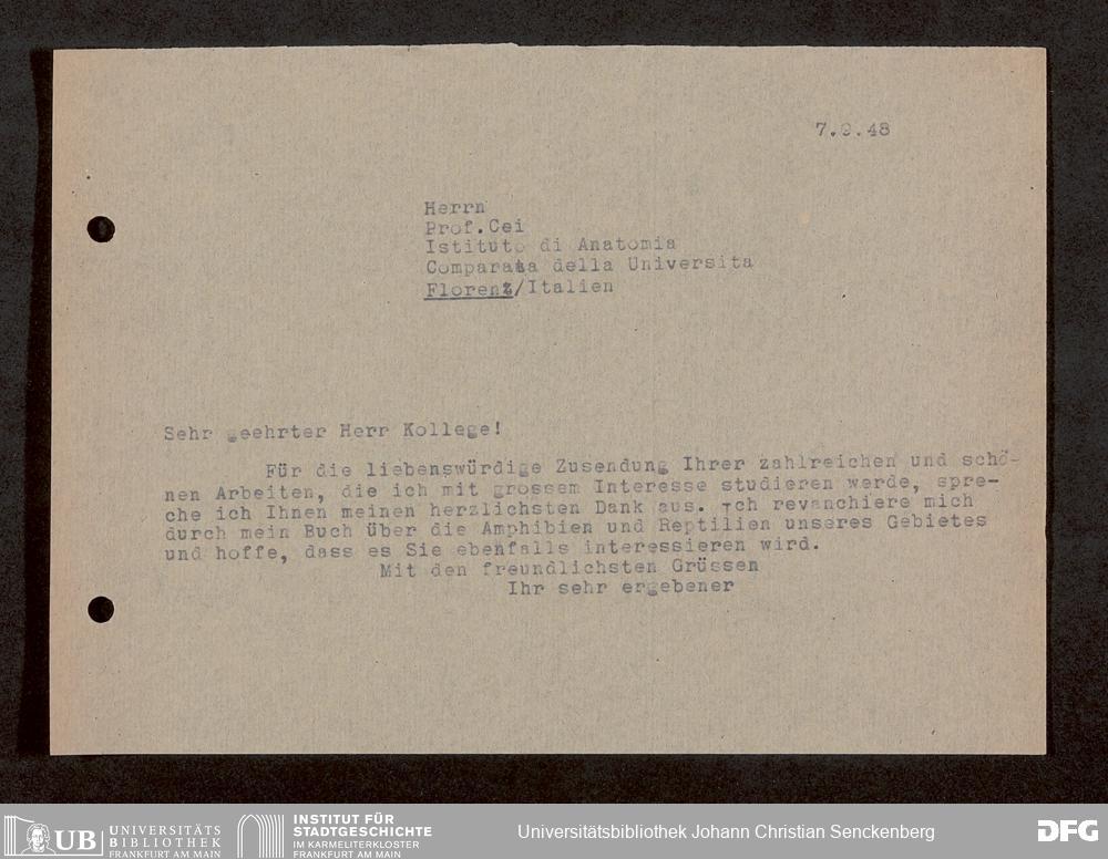 V176 Senckenberg Gesellschaft für Naturforschung, 1759-1 - Korrespondenz von Robert Mertens
