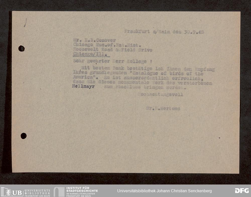 V176 Senckenberg Gesellschaft für Naturforschung, 1759-1 - Korrespondenz von Robert Mertens