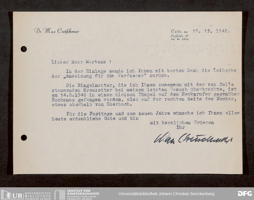 V176 Senckenberg Gesellschaft für Naturforschung, 1759-1 - Korrespondenz von Robert Mertens