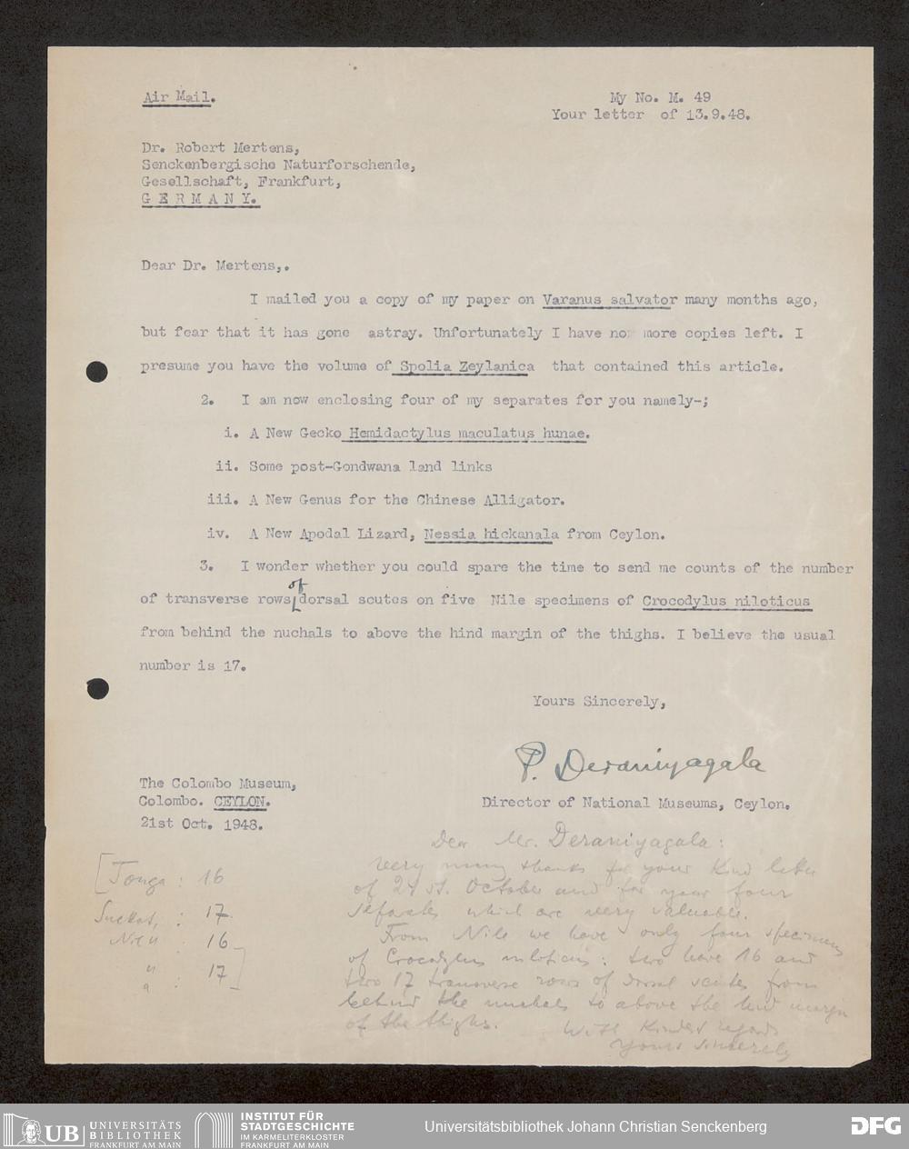 V176 Senckenberg Gesellschaft für Naturforschung, 1759-1 - Korrespondenz von Robert Mertens