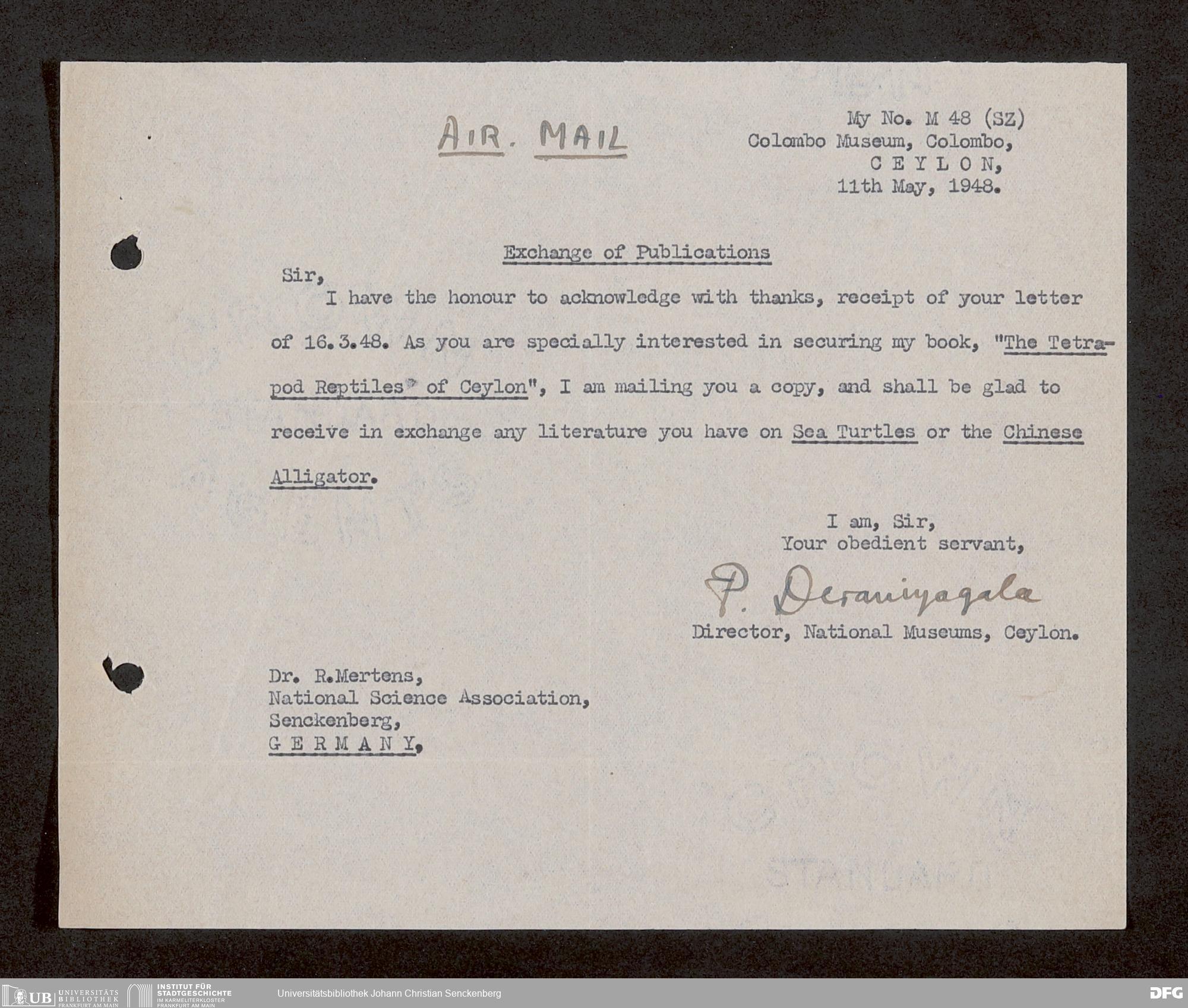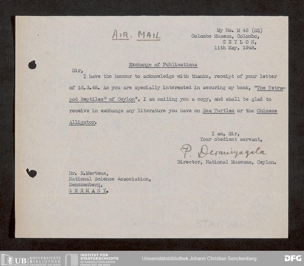 V176 Senckenberg Gesellschaft für Naturforschung, 1759-1 - Korrespondenz von Robert Mertens