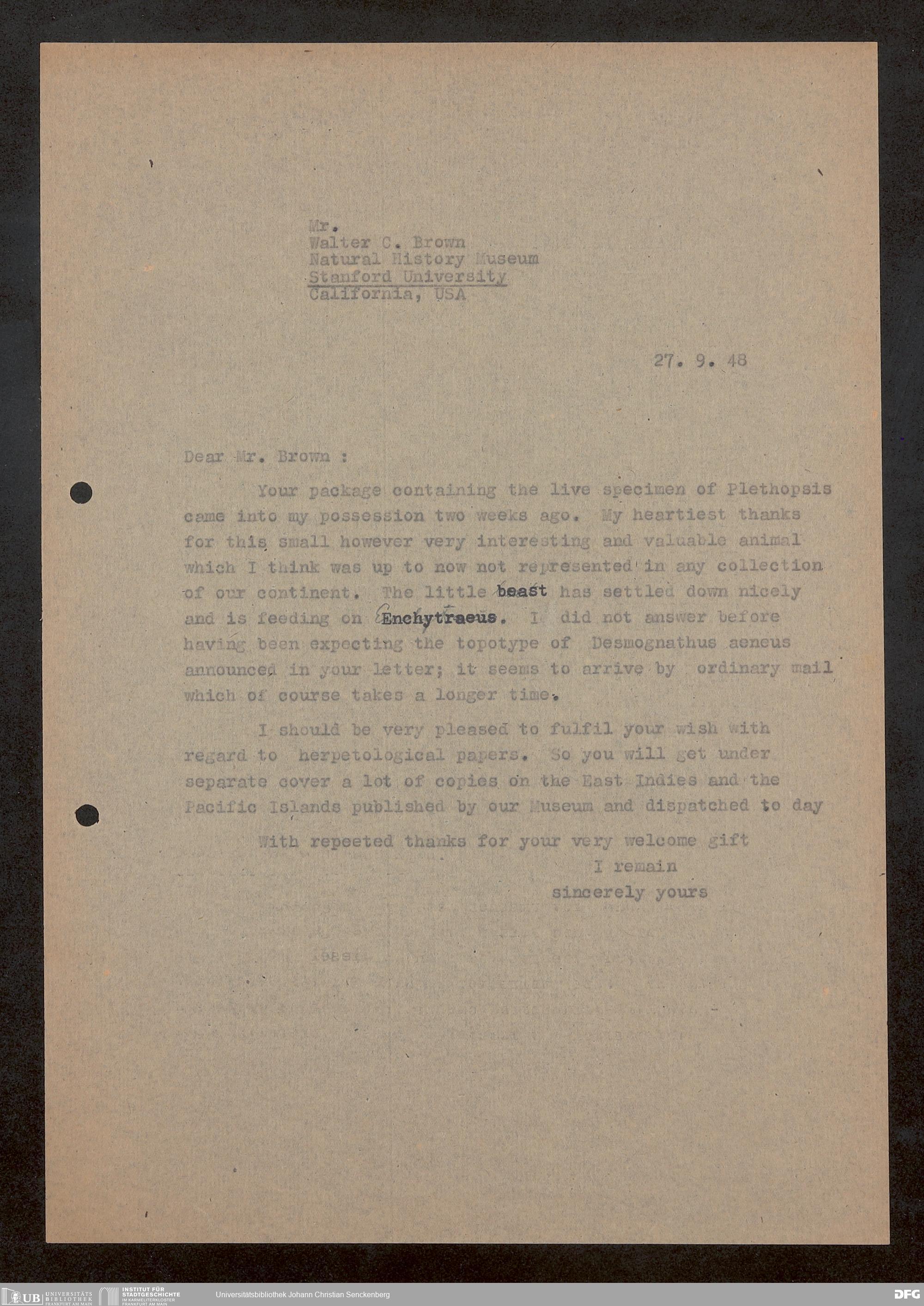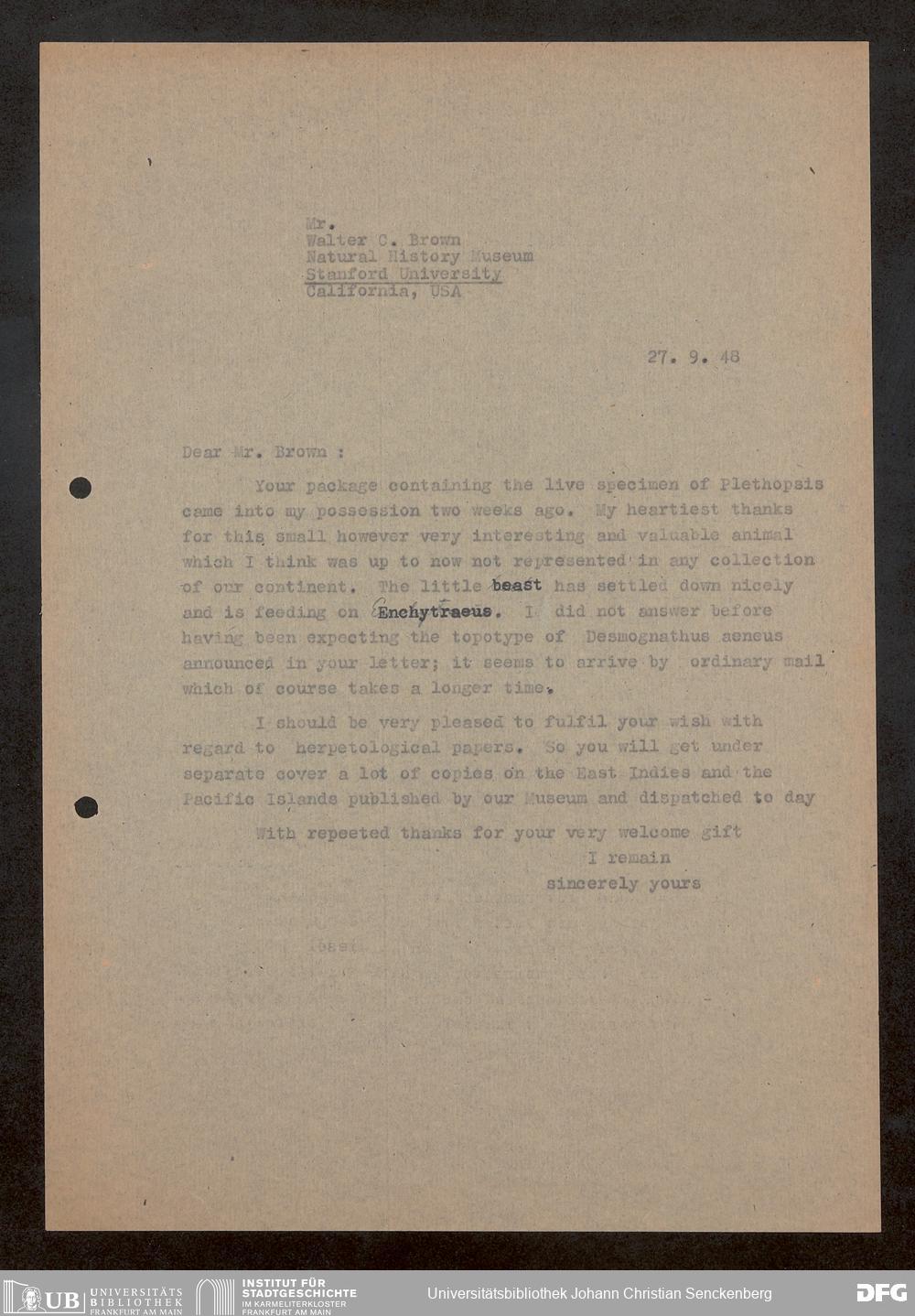 V176 Senckenberg Gesellschaft für Naturforschung, 1759-1 - Korrespondenz von Robert Mertens